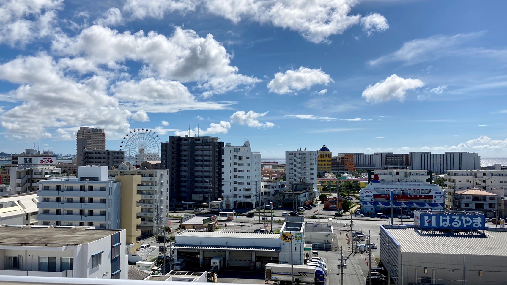 ベランダからの景色です。アメリカンビレッジのシンボル、観覧車が見えます。