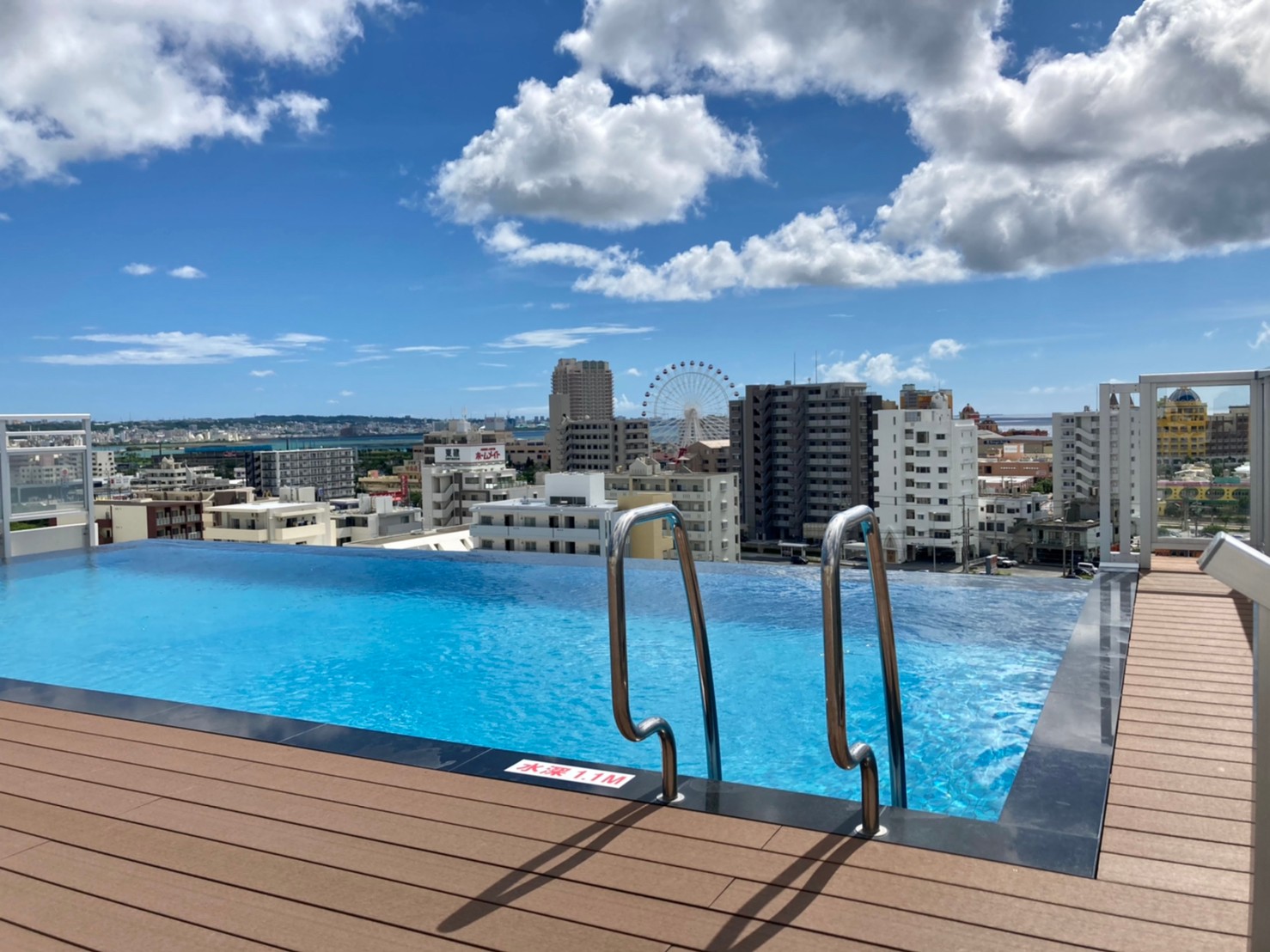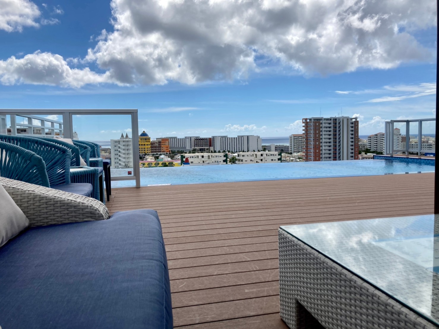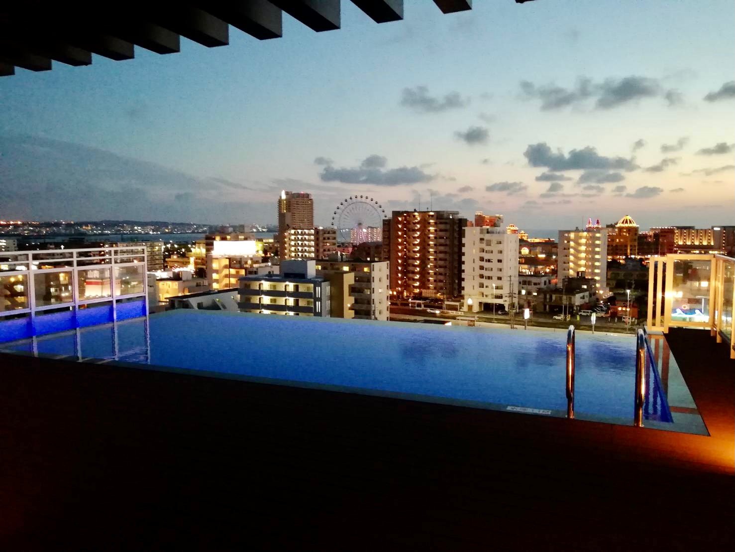 プールからの眺望は北谷町内を見渡せ、最高です。