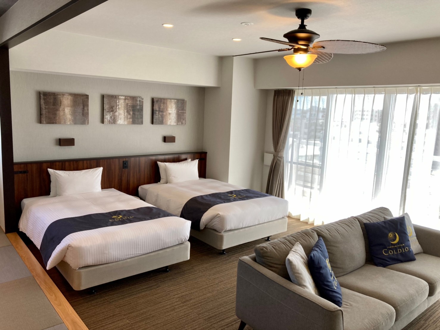 ソファもありアメリカンビレッジ方面や海を見ながら寛げます。