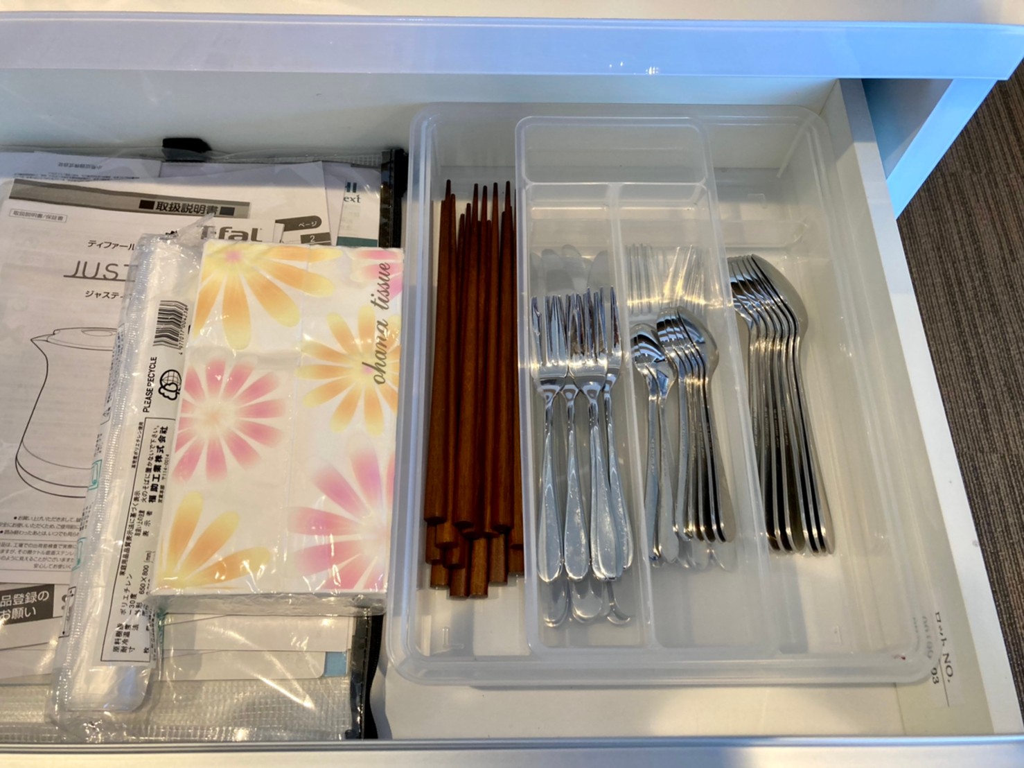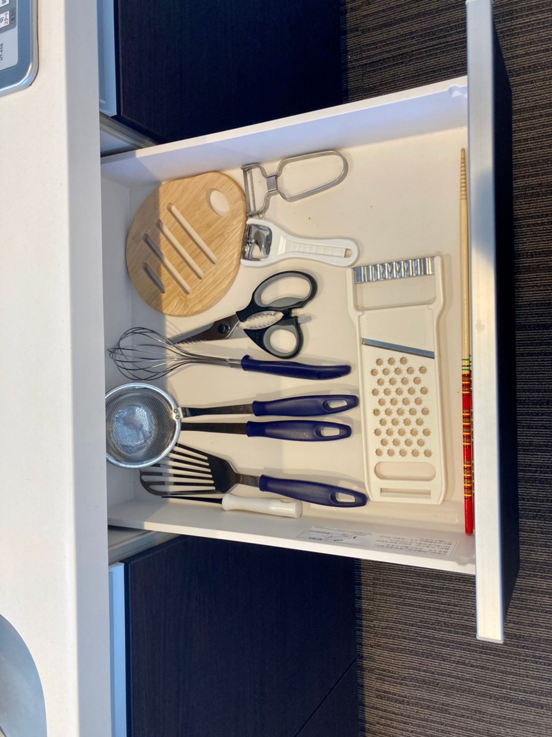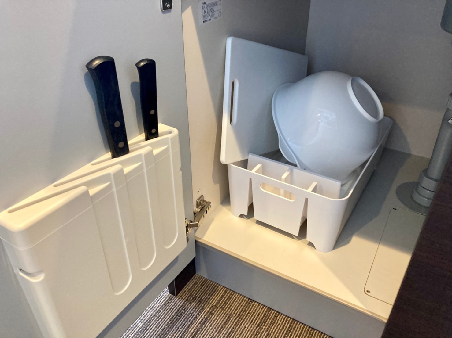 食器やグラス、調理道具が備え付けられています。