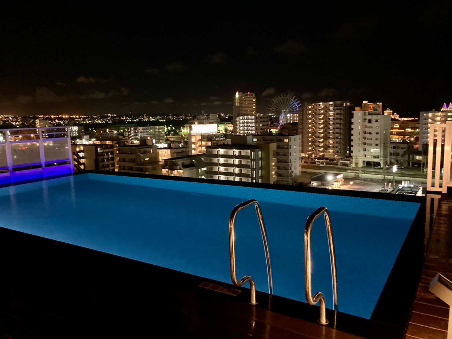 夜には夜景がきれいで、観覧車も見えます。