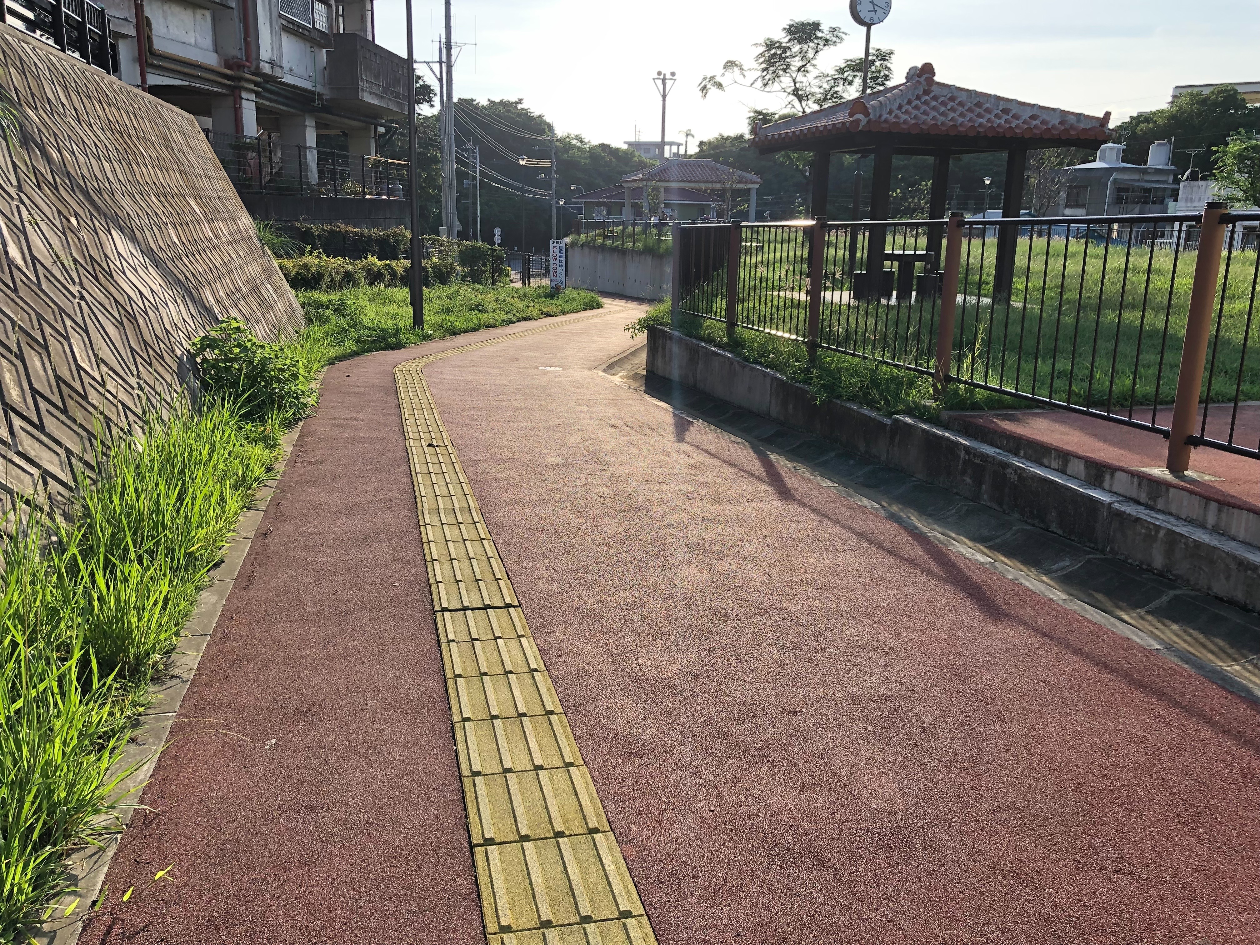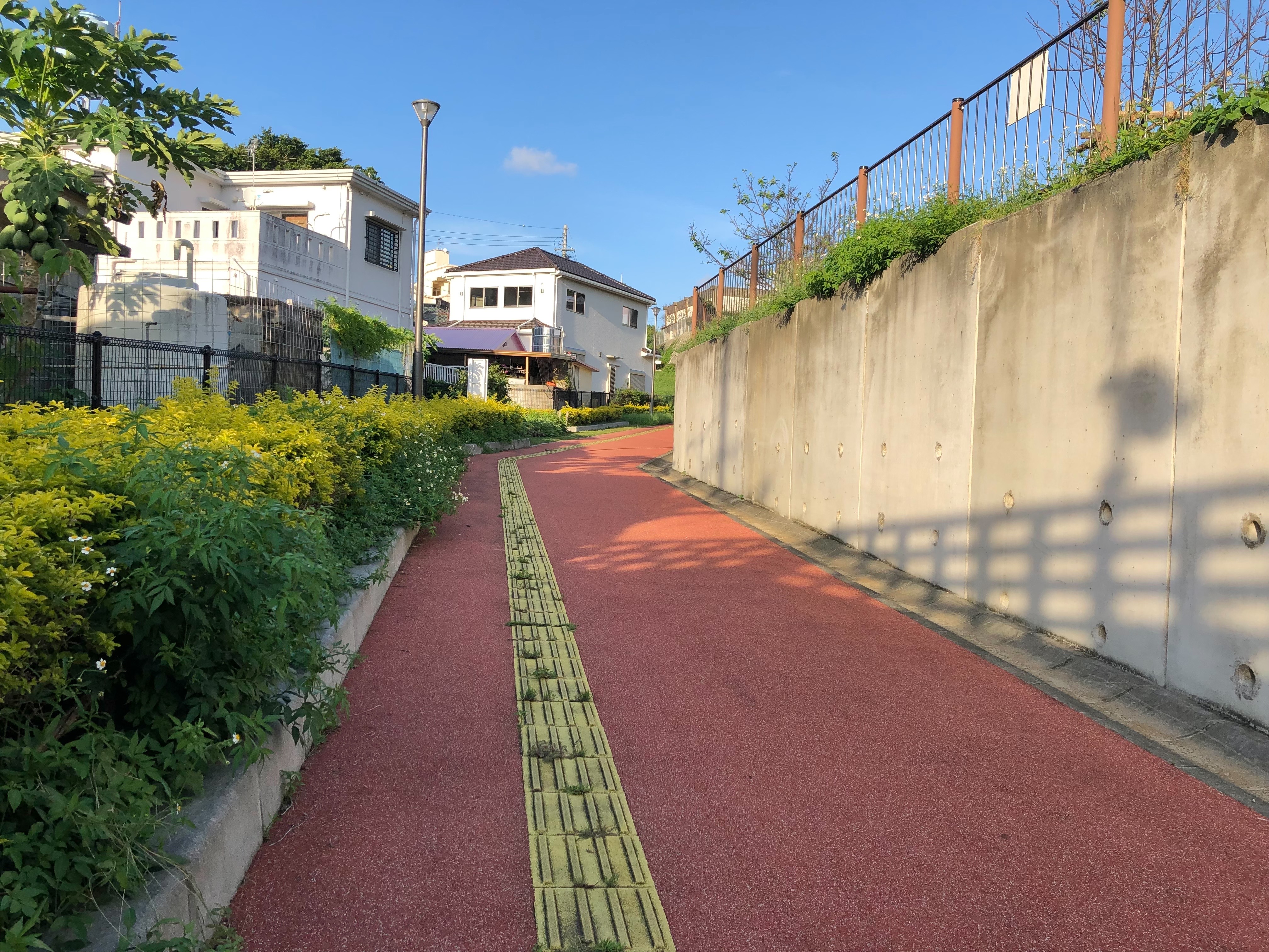 傾斜の関係でウォーキングコースは広場より1段下がっています。