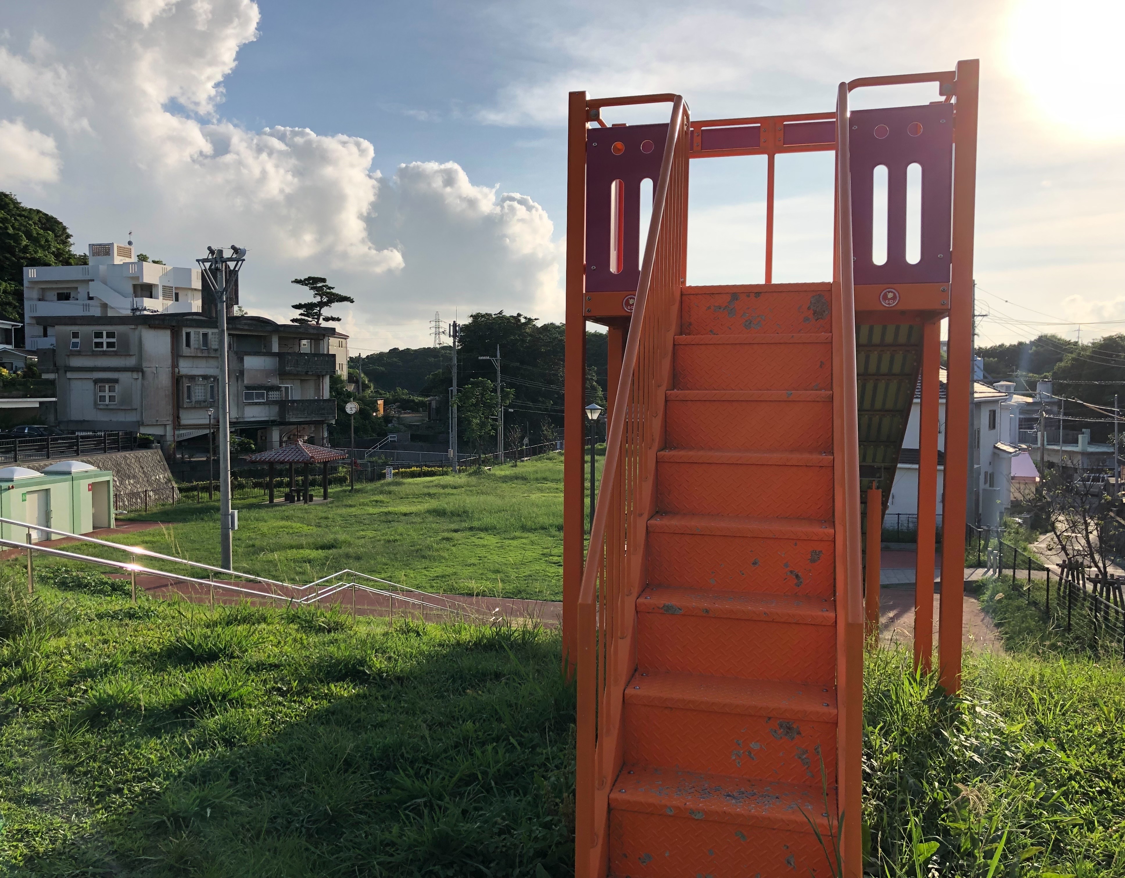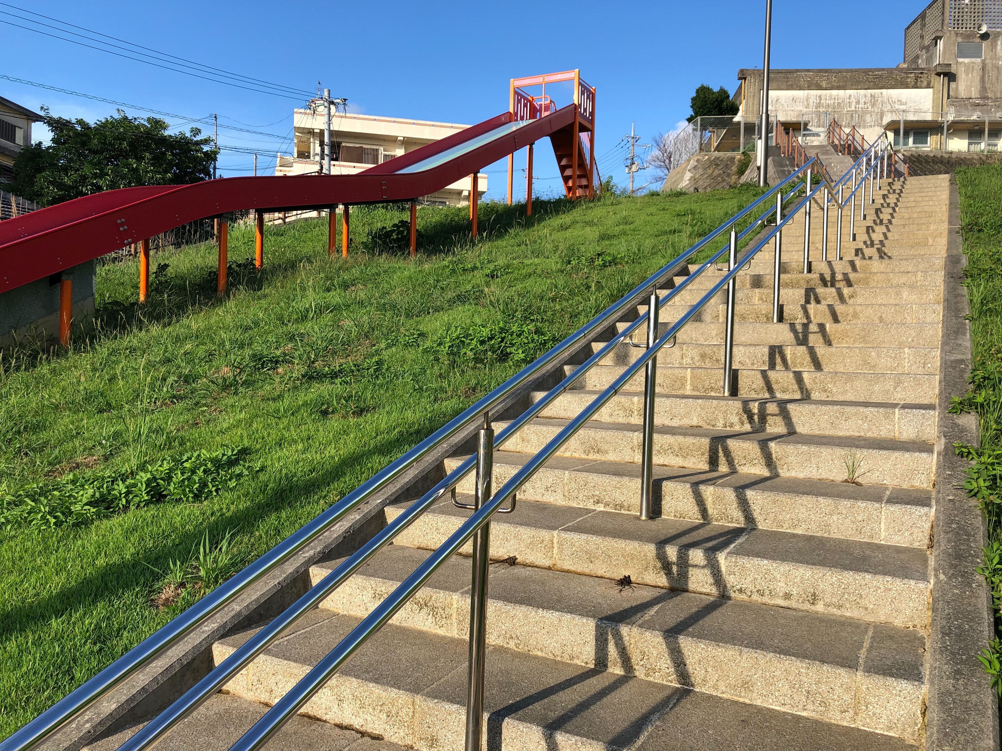 滑り台の横には階段があります。