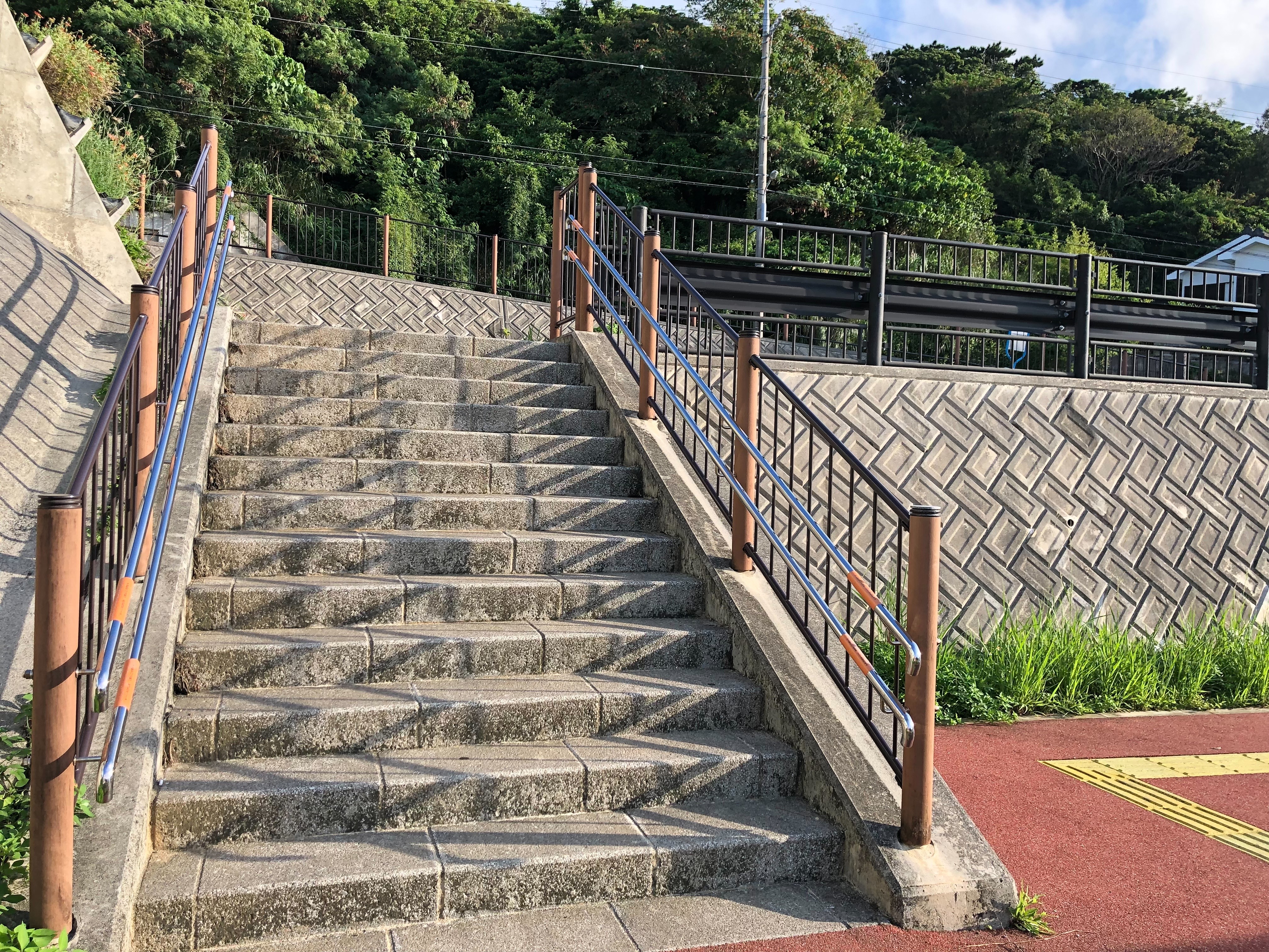 一般用駐車場に駐車した場合は、この階段を下りると公園です。