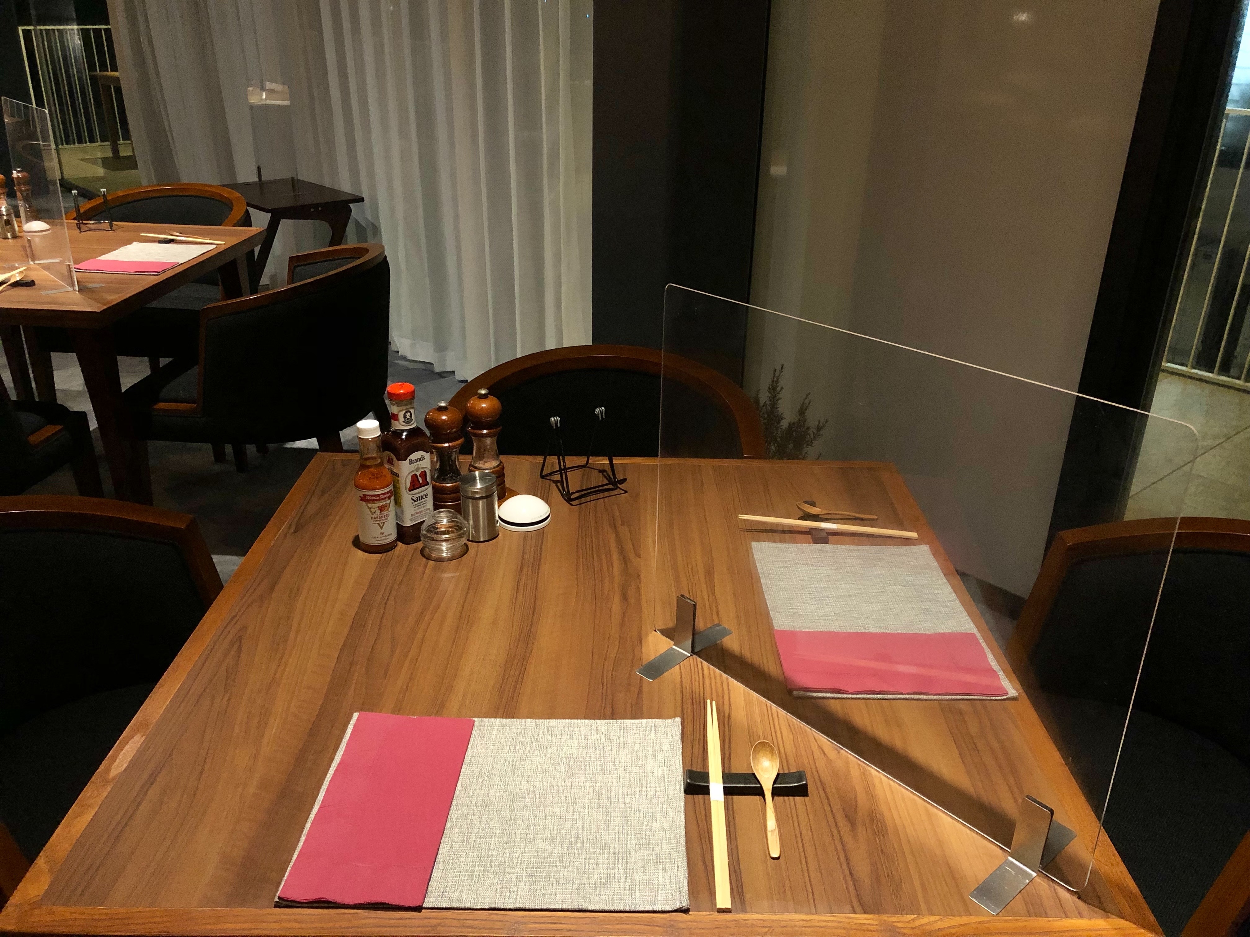 入店時は、日差しに配慮されていて、スクリーンカーテンが降ろされていました。
