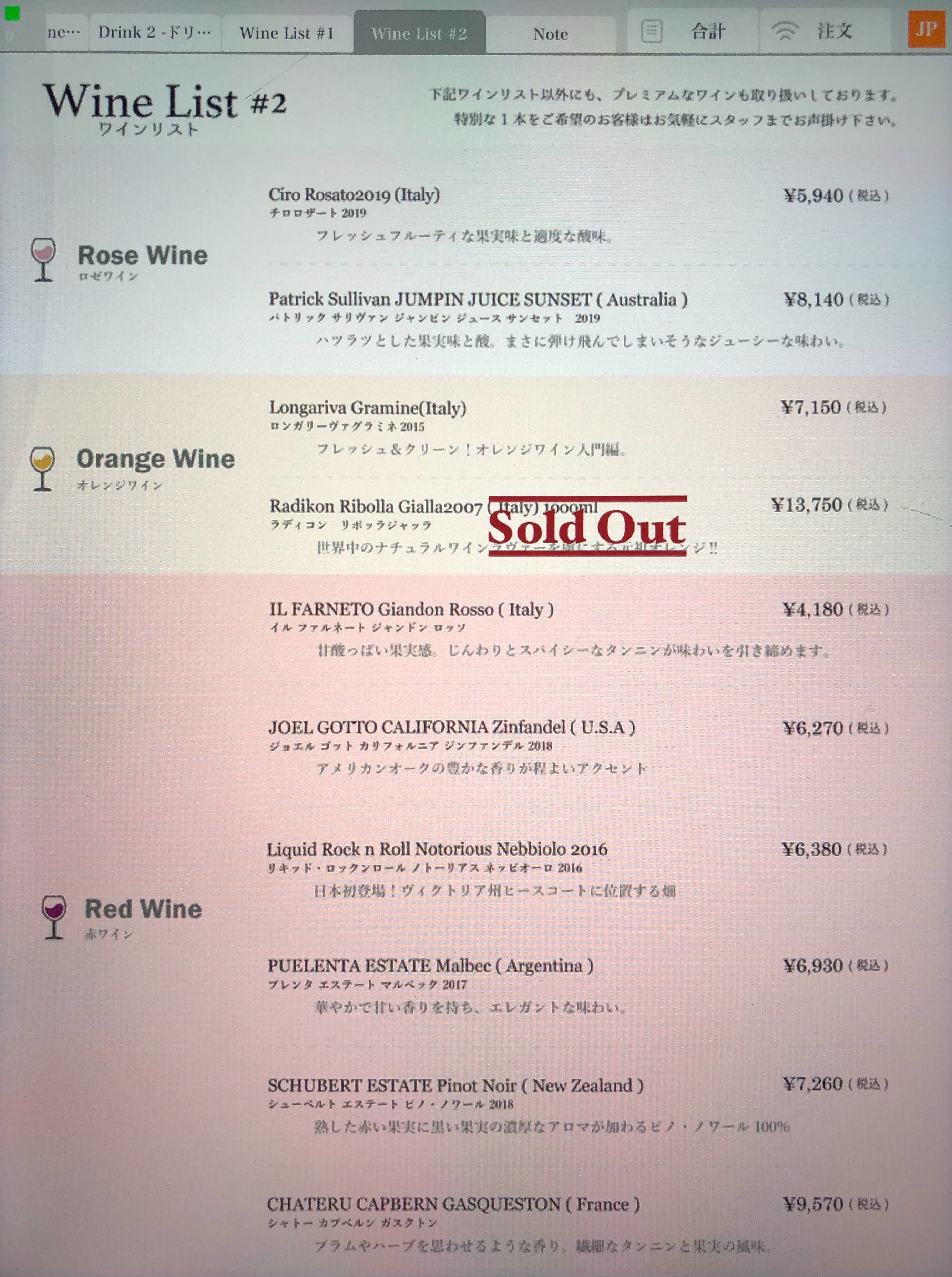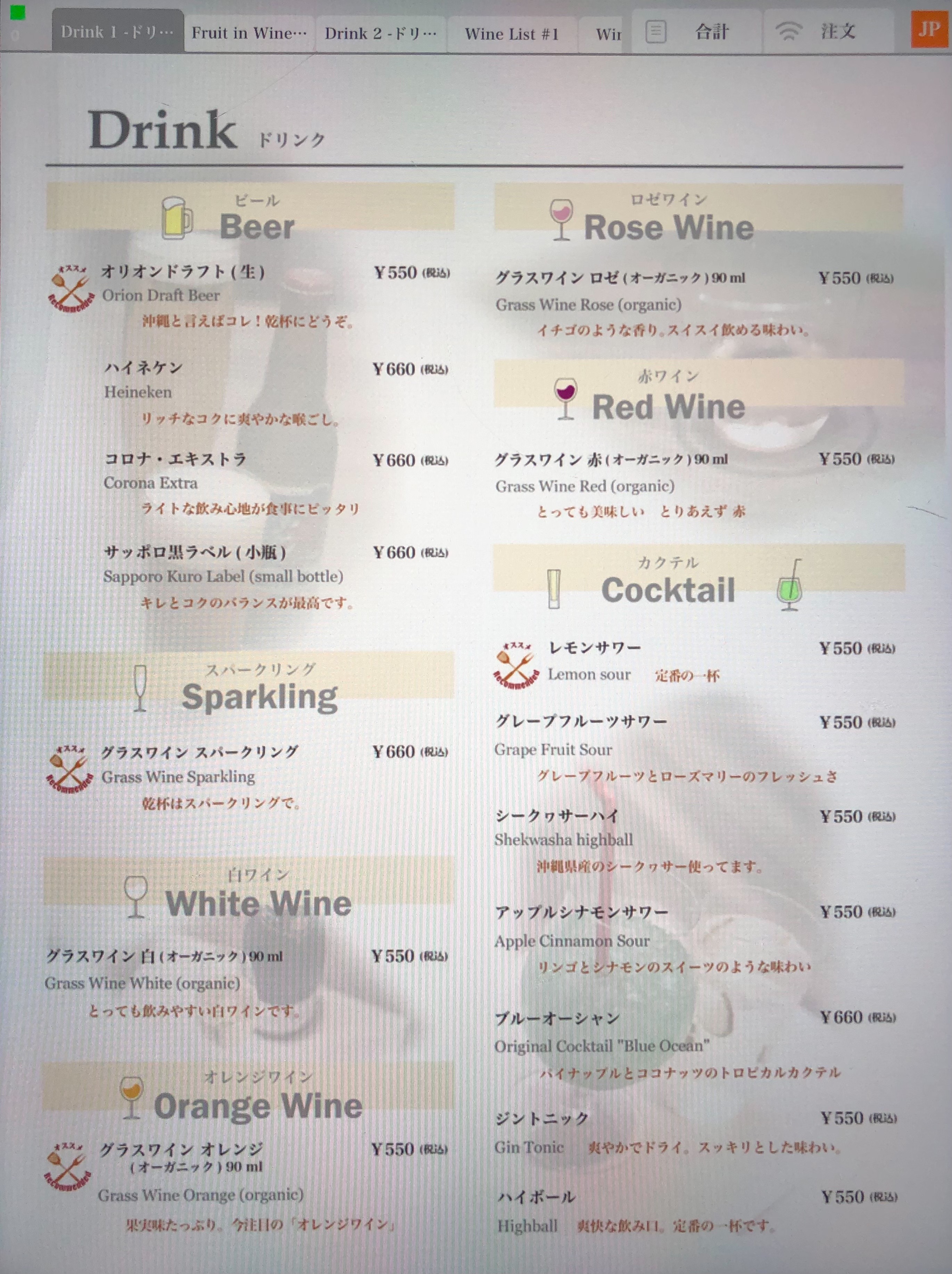 ドリンクメニュー
