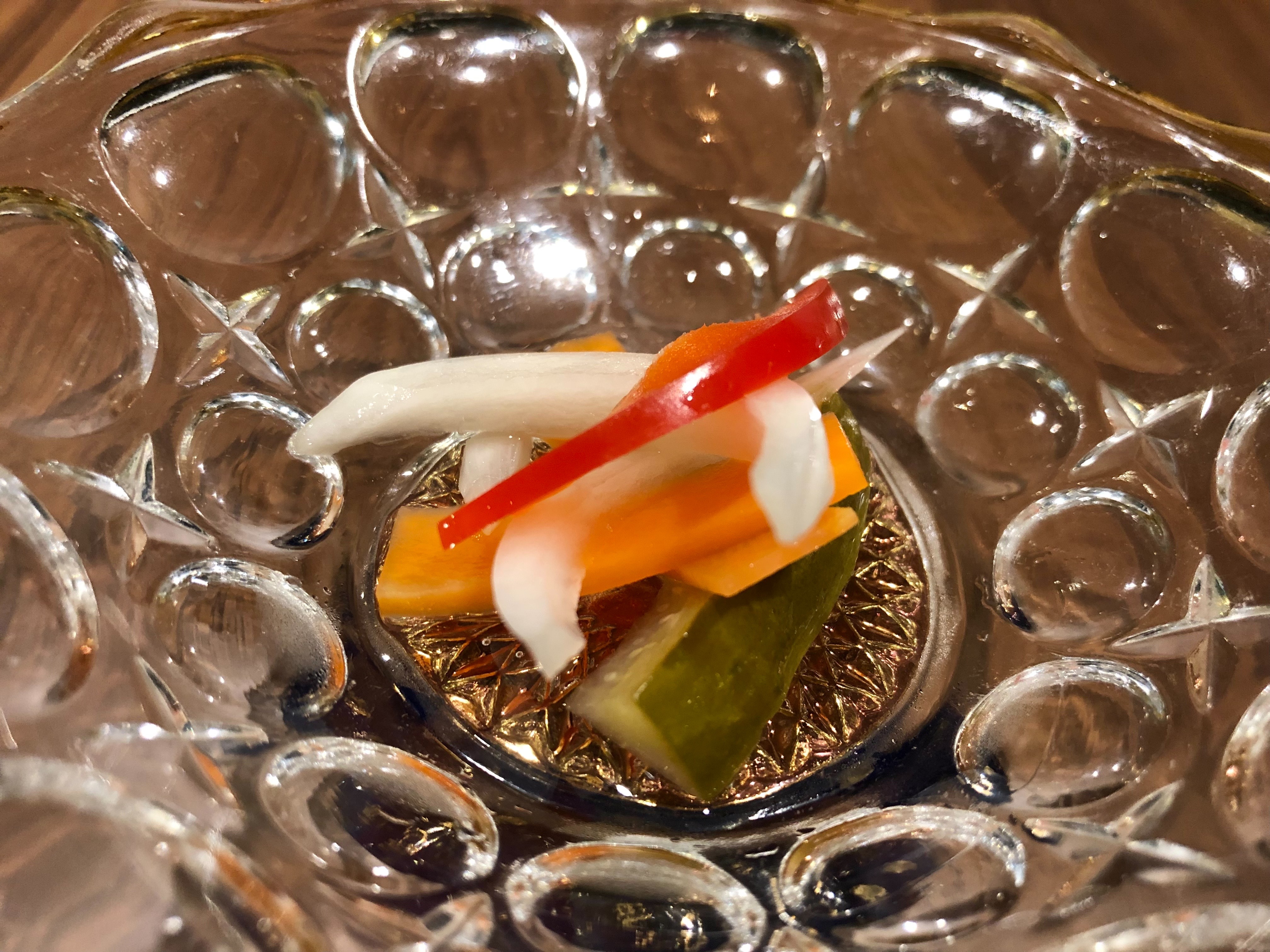 きゅうり・にんじん・玉ねぎ・パプリカからなる自家製のピクルスです。
