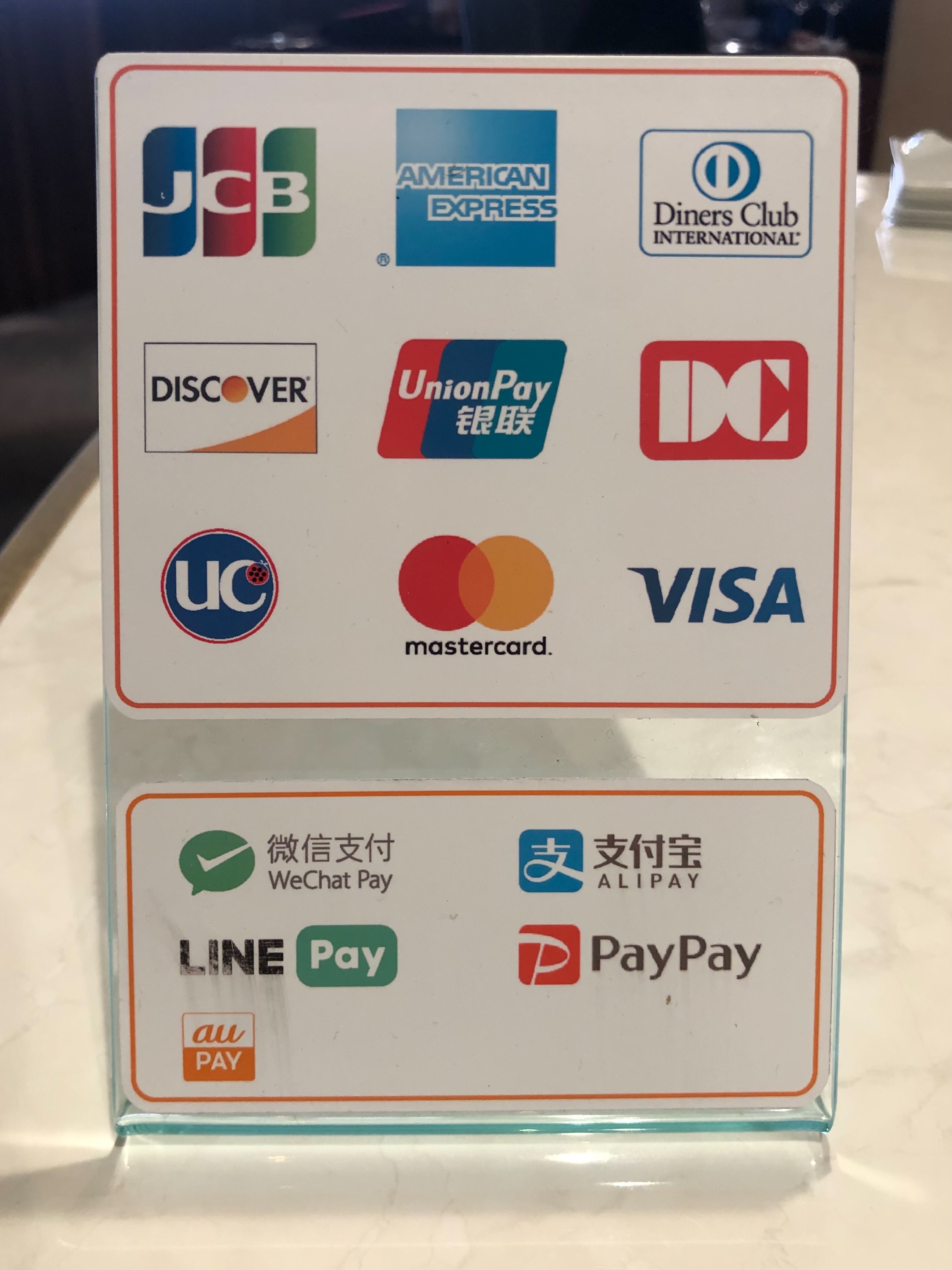 カード:VISA, Mastercard, JCB, American Express, Discover, uc, DC, UnionPay, Diners Club