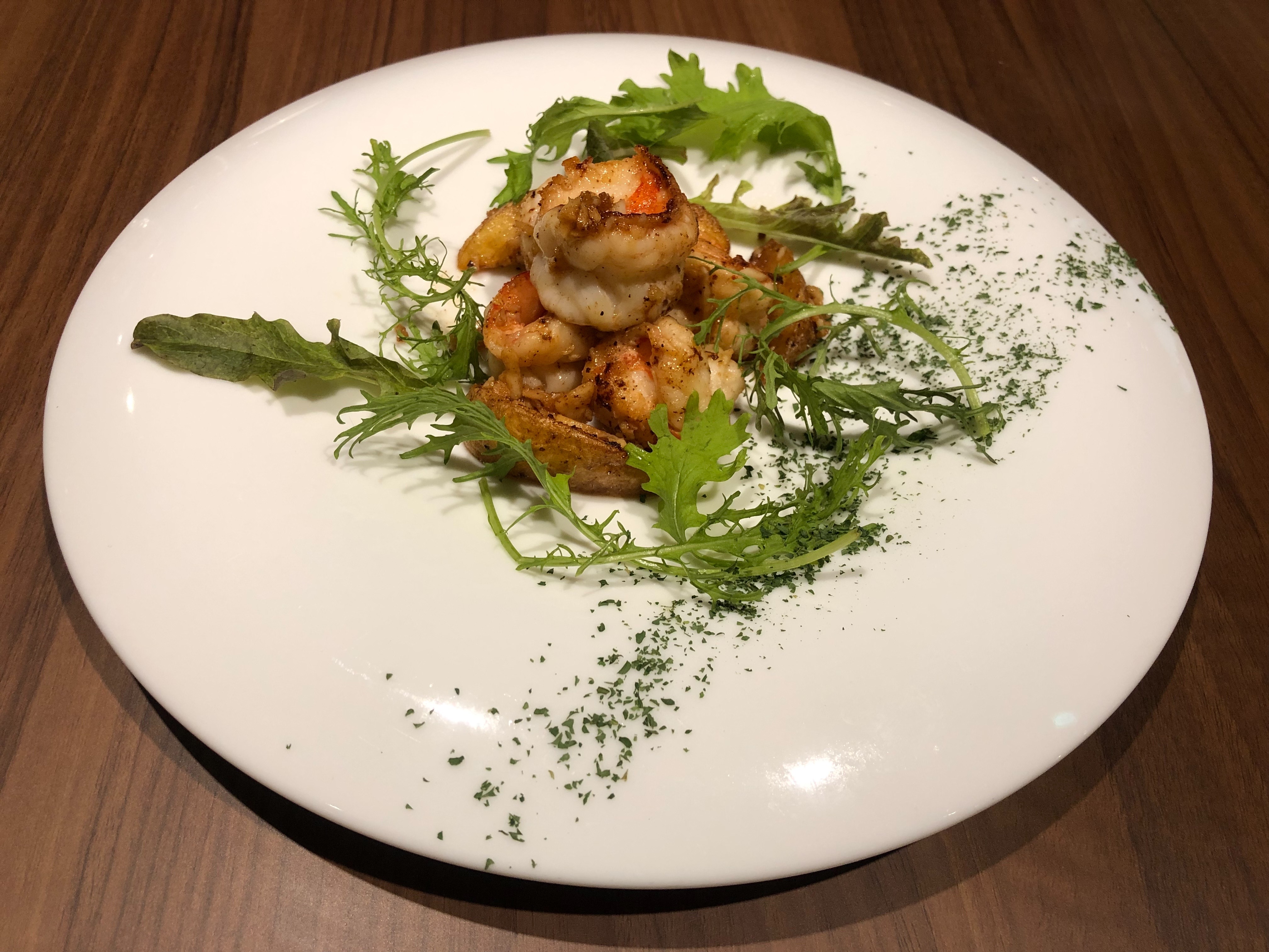お食事メニューのまず一品目は、Seafoodメニューより「ガーリックシュリンプ - レモン風味 - 」¥1,320(税込)を注文。
