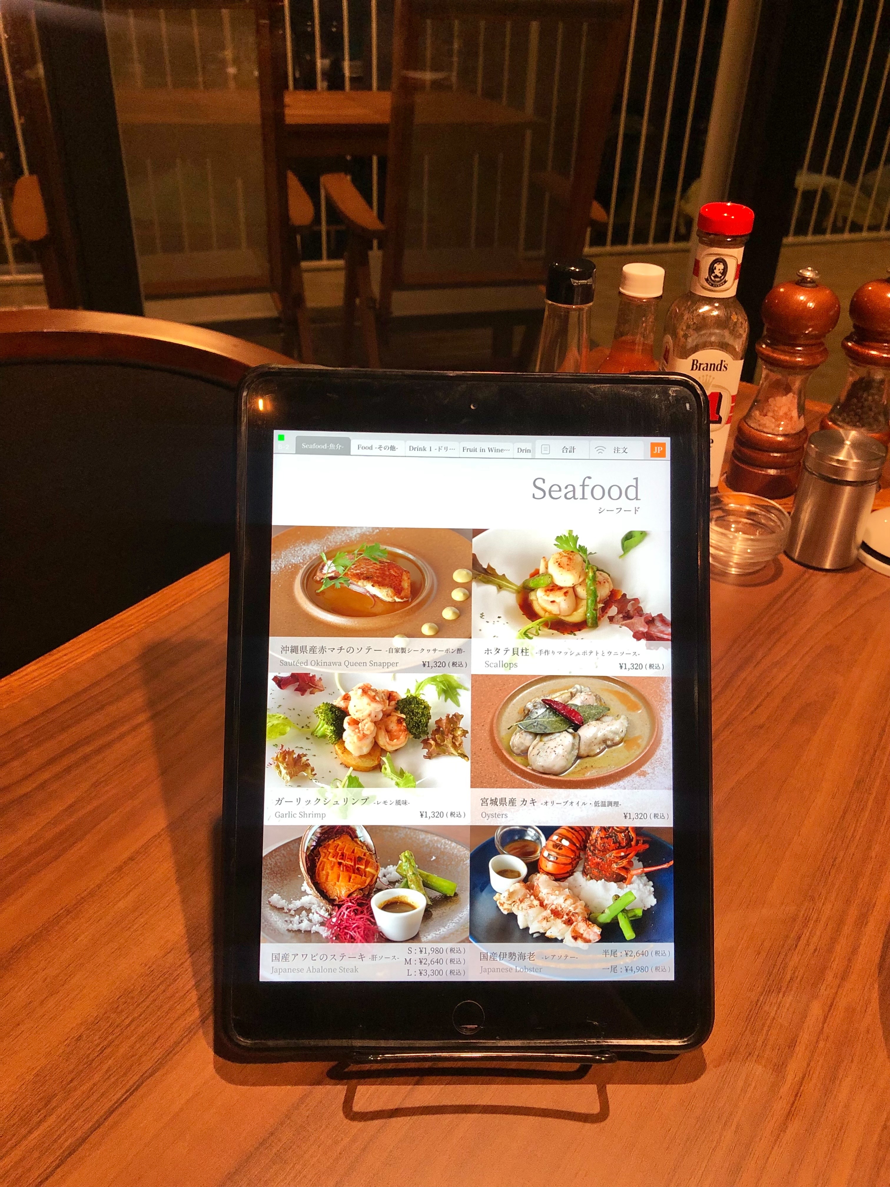 料理の注文は、こちらのタブレットを使います。