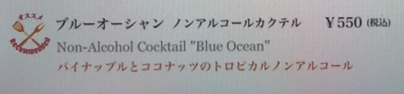 ブルーオーシャン ノンアルコールカクテルは、オススメマークが付いています。