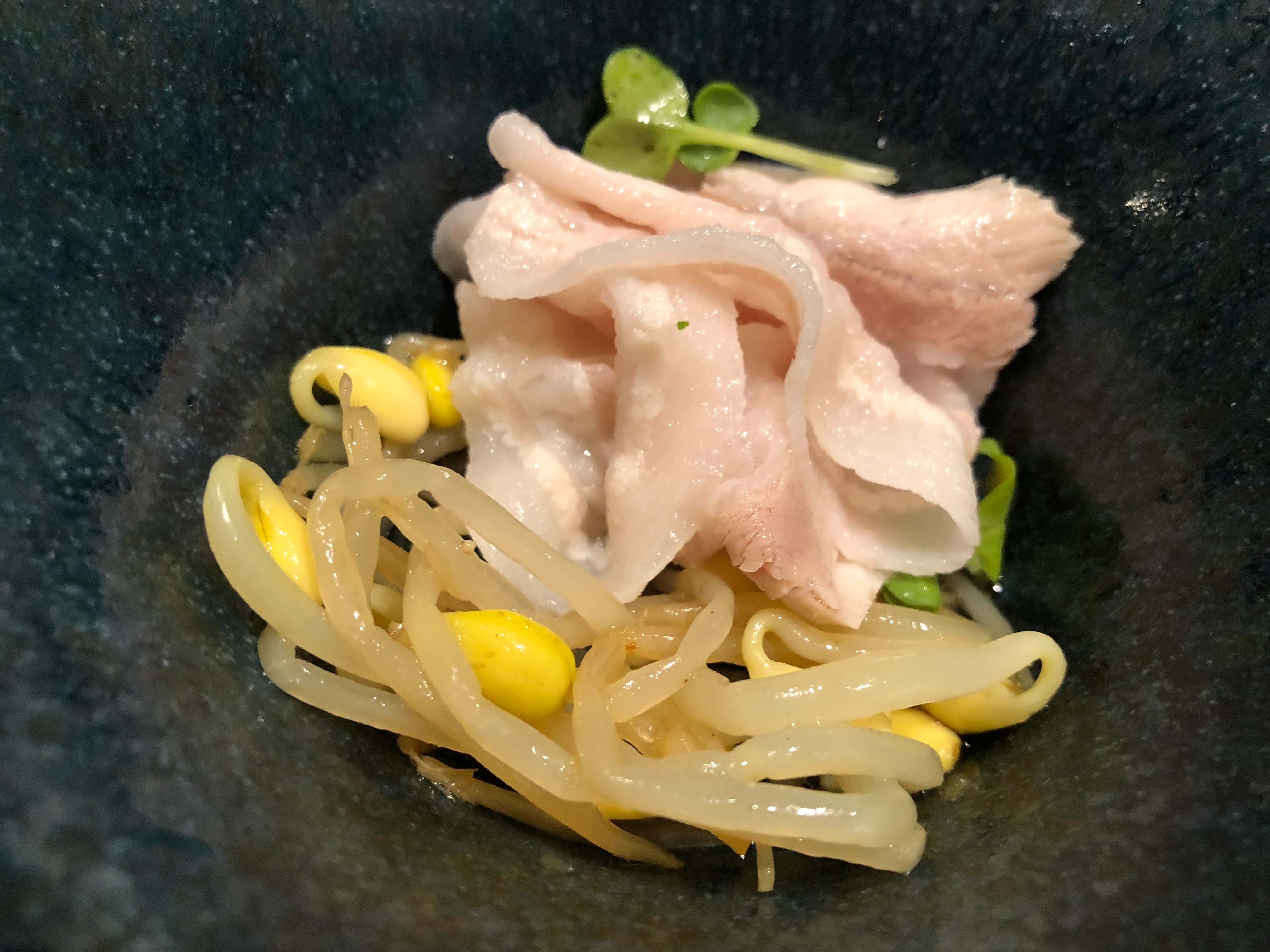 あぐー豚の下にはもやしが入っていて、シャキシャキとしていて新鮮さを感じられました。