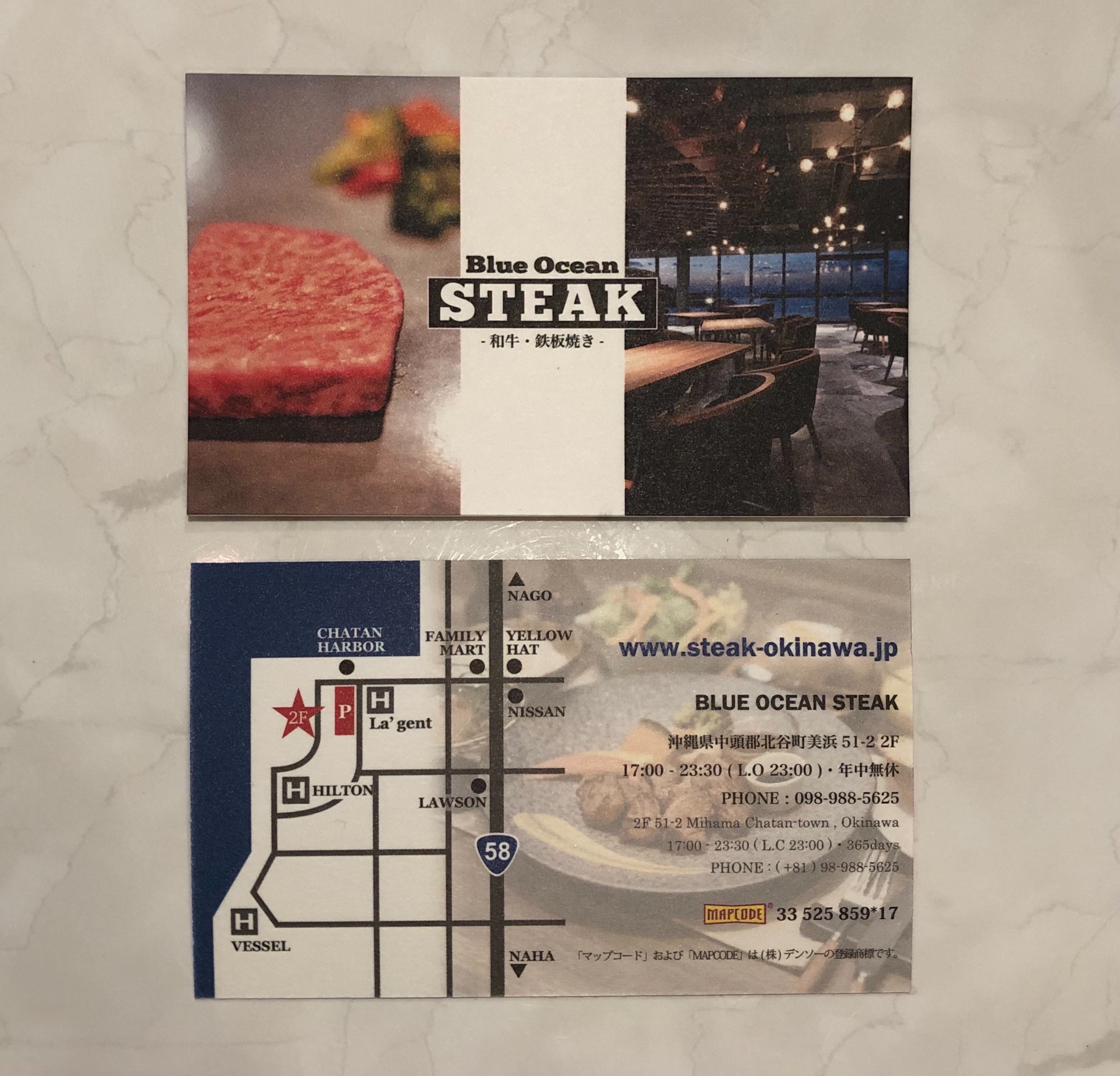 北谷町美浜にあるオーシャンビューを望めるステーキ屋さん「BLUE OCEAN STEAK(ブルーオーシャンステーキ)」さんをご紹介します。