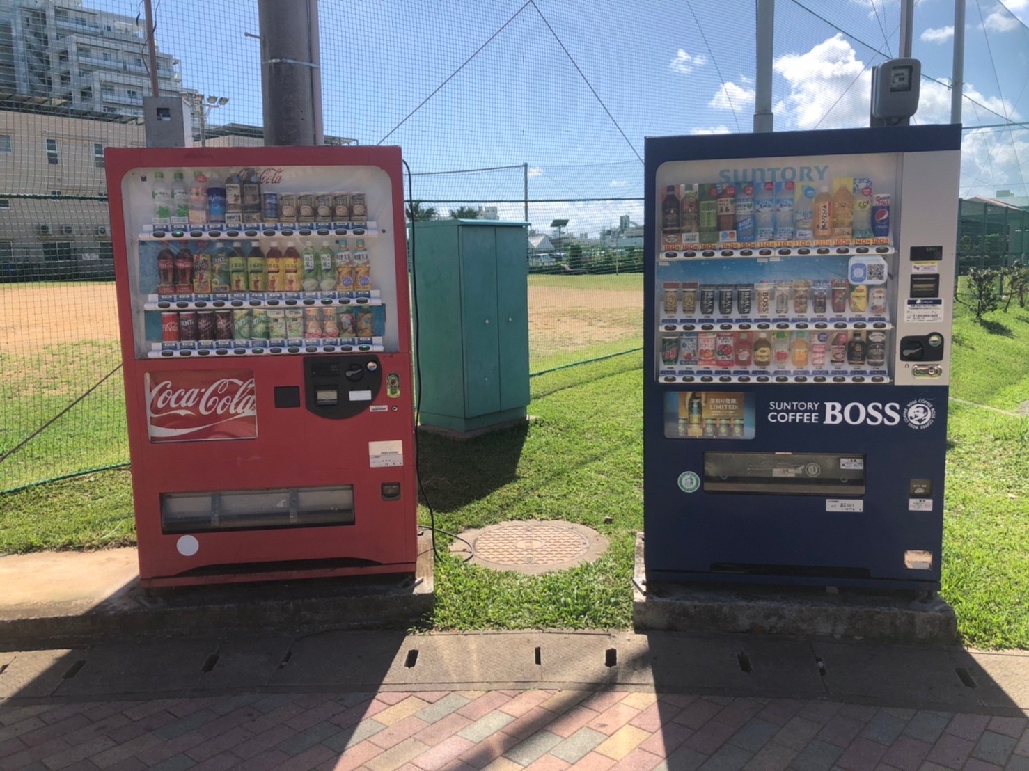 公園に入るとすぐに自動販売機があります。