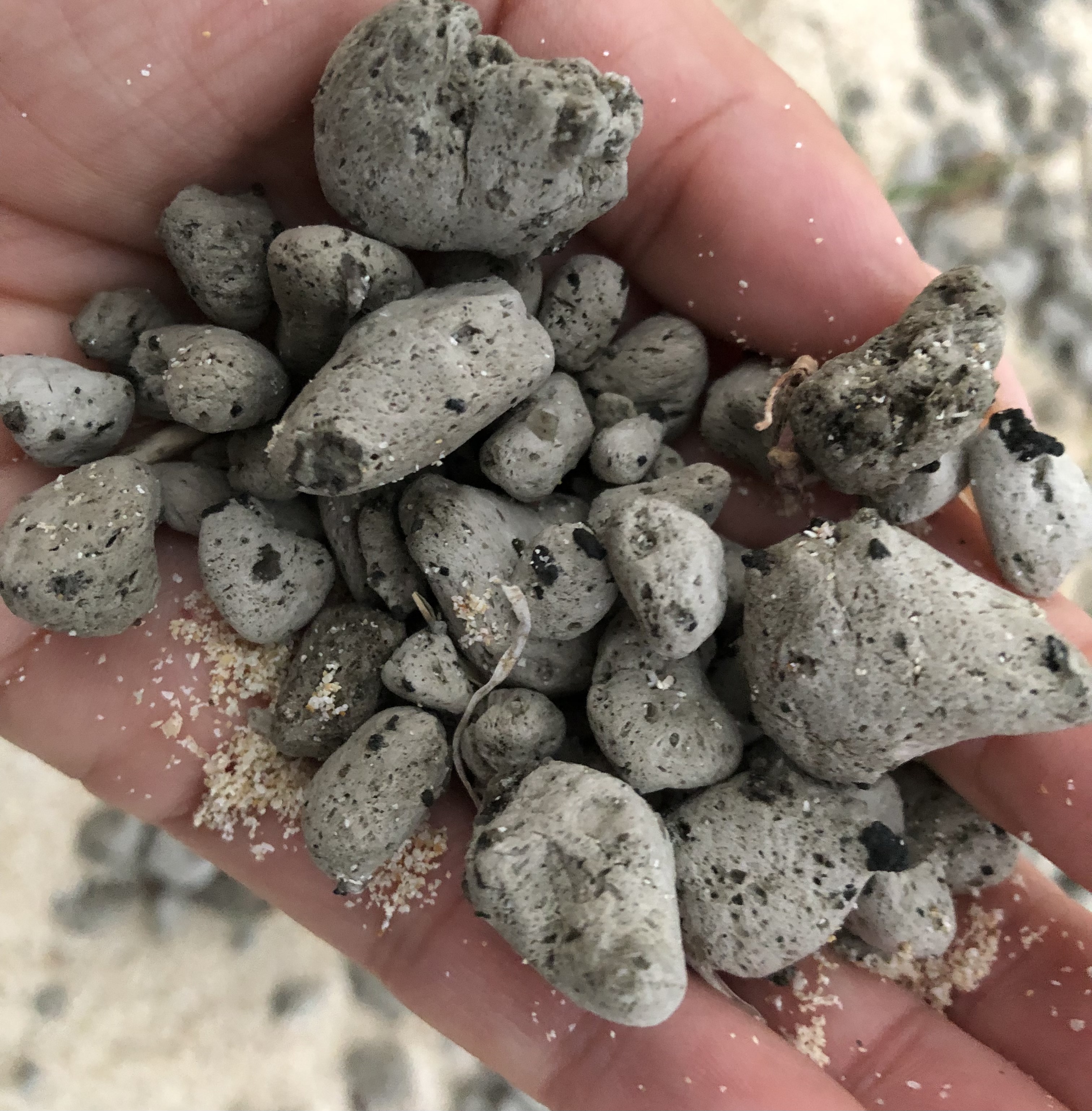こちらも入り江の形状をしているので、波に流されてきた軽石が行き場を無くし漂っていました。