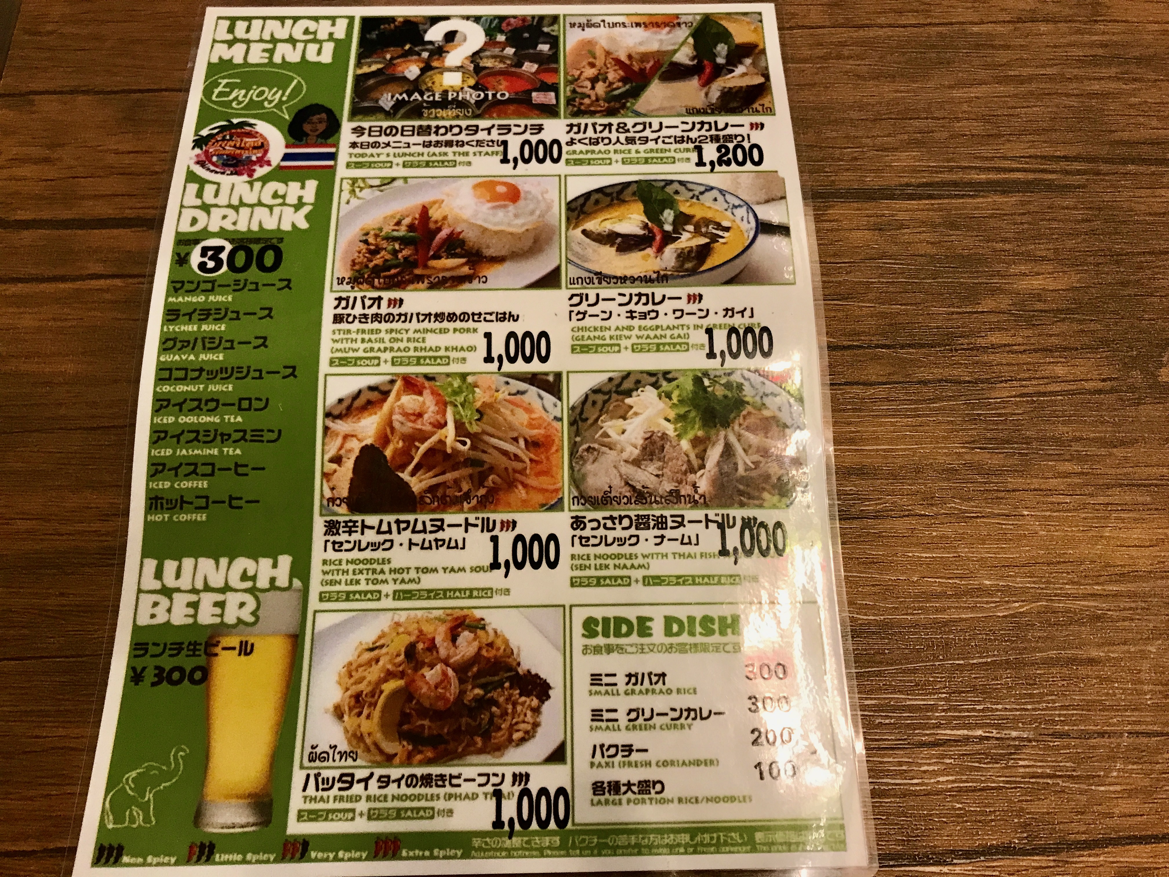 毎日日替わりのタイランチがあり定番のカレーやガパオなどもあります。