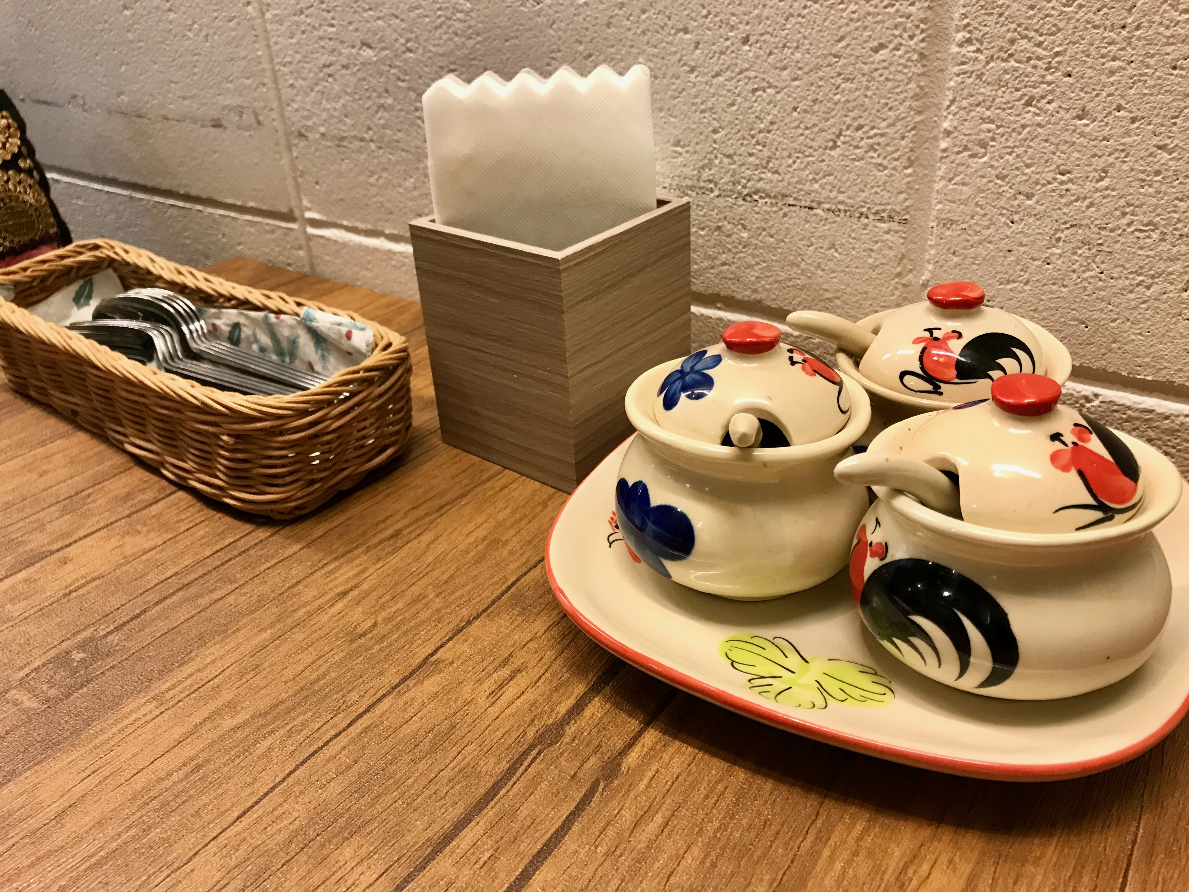 卓上にはチリソースなどの調味料があるので自分で味付けを調整できます。