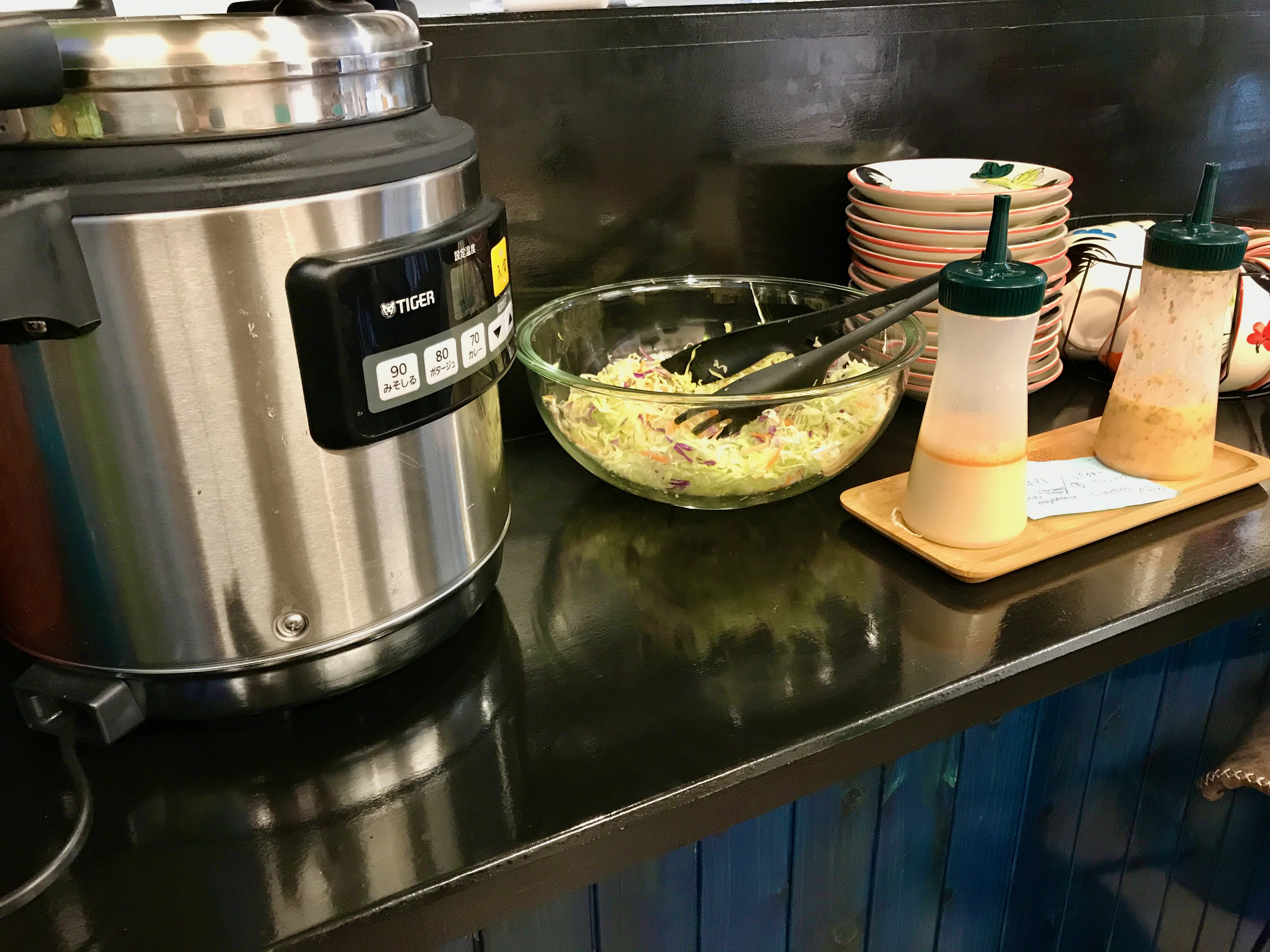 お茶、サラダ、スープはカウンターに自分で取りに行きます。
