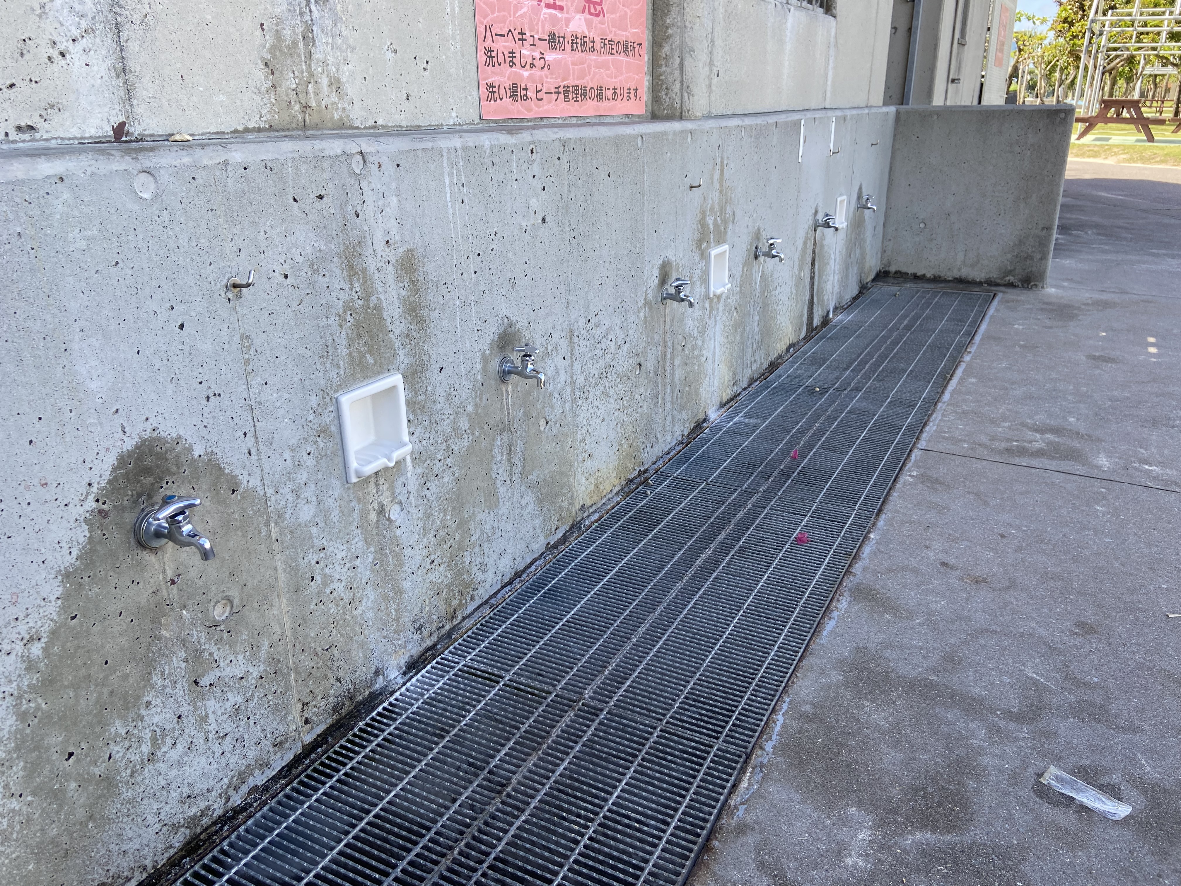 また、管理棟近くにはトイレ・シャワールーム・コインロッカーに併設された無料の手洗い場もあります。
