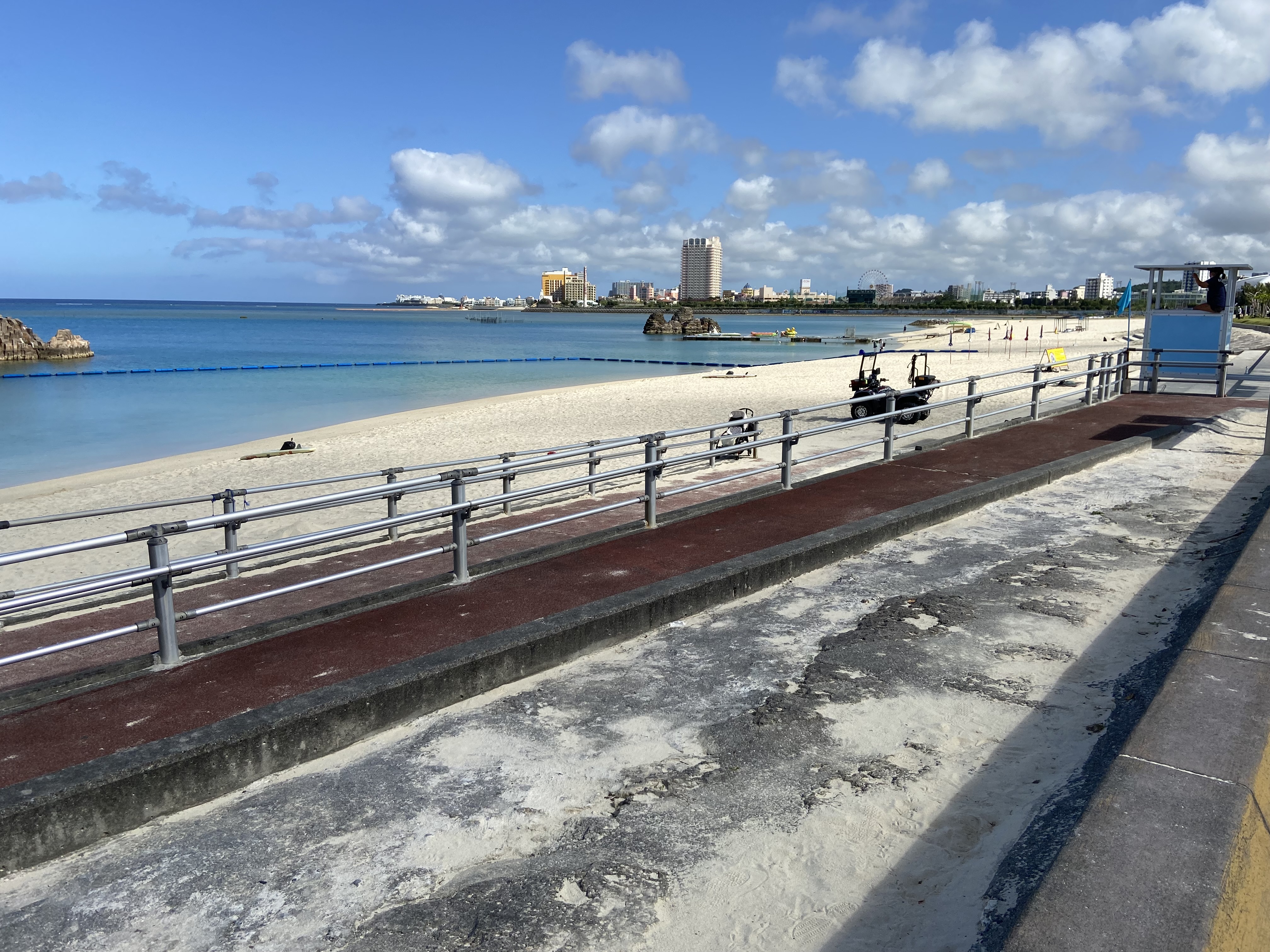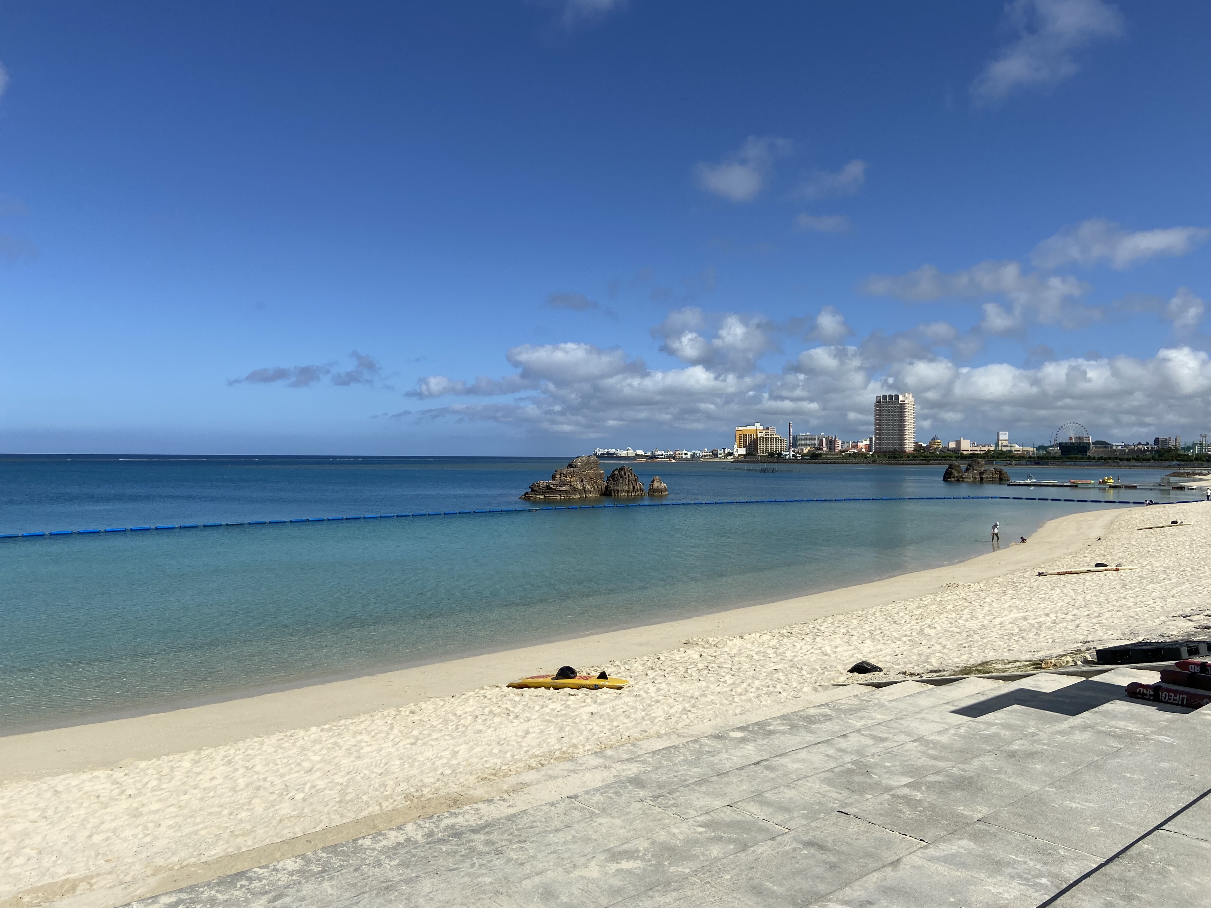 真っ白な砂浜と海、デポアイランドを一望できるアラハビーチをお子様連れに嬉しい情報と共に紹介します。現在、軽石の漂着も落ち着き多少の名残りはありますが美しい砂浜に戻っていました。
