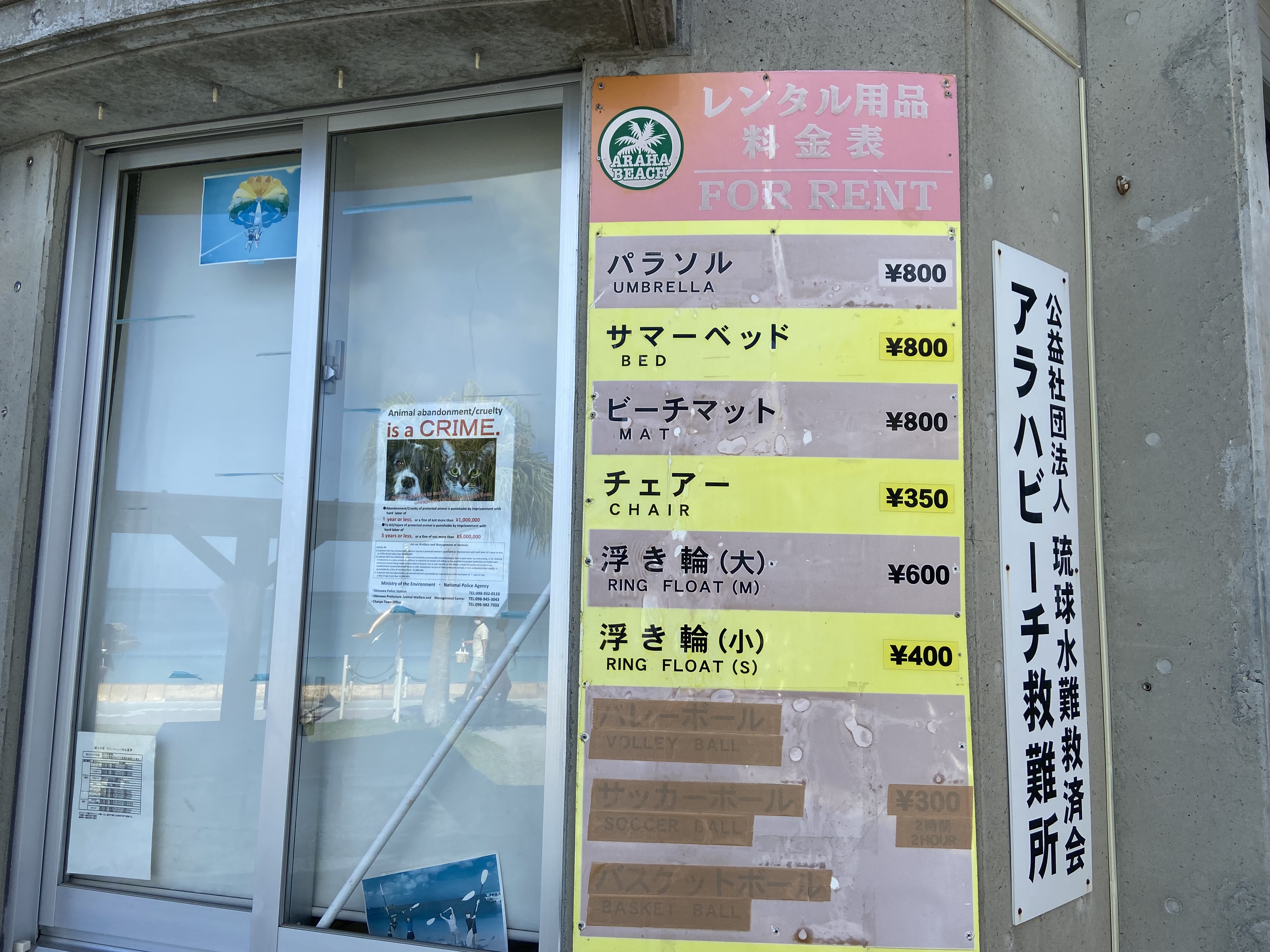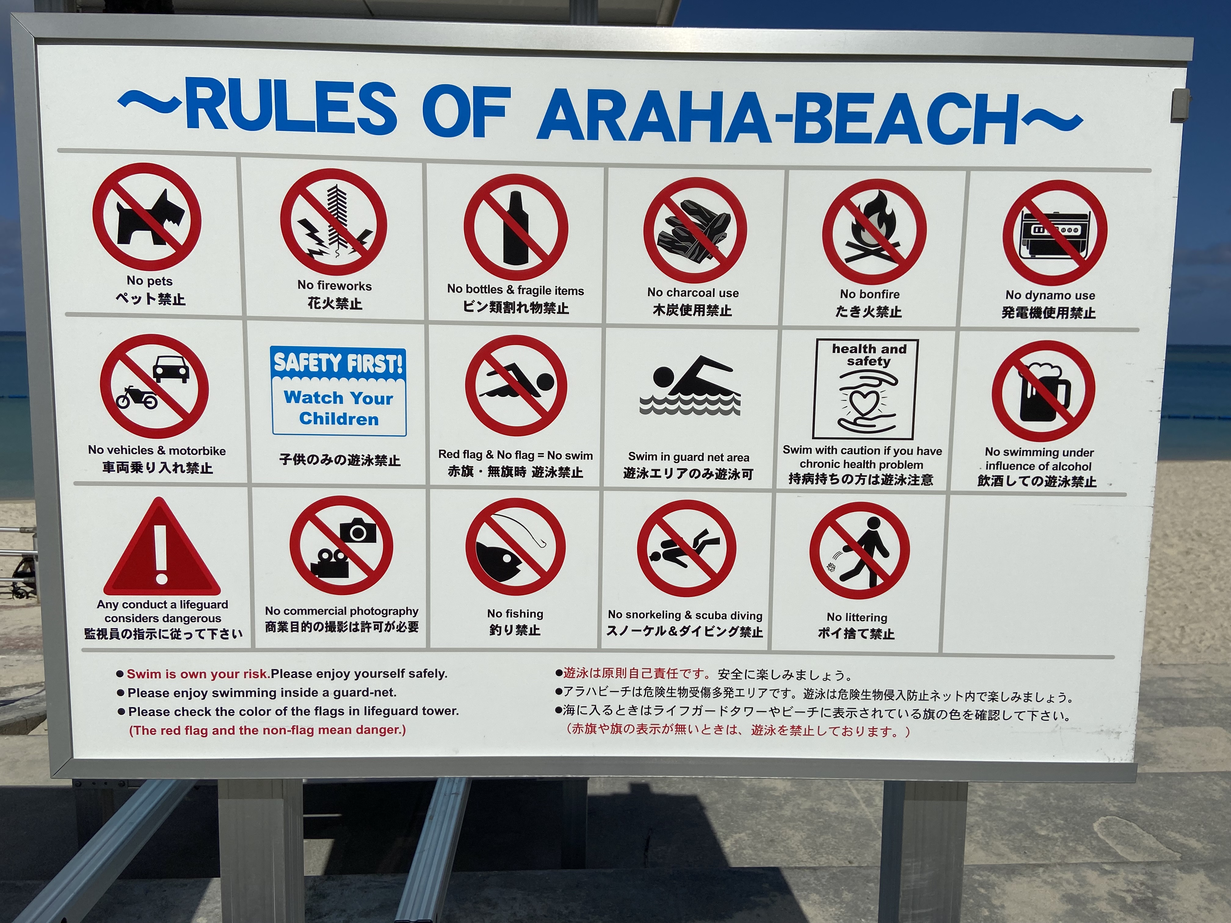 また、アラハビーチ全体が芝生のエリアが多い為レジャーシートがあるとお子様連れでも休憩スペースが確保しやすくなります。