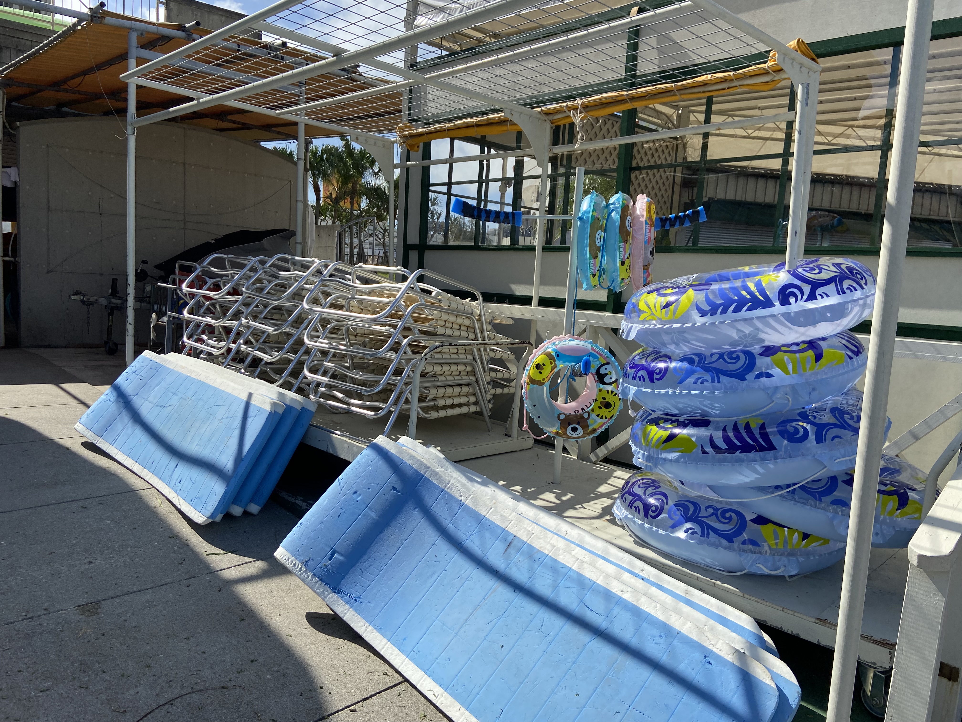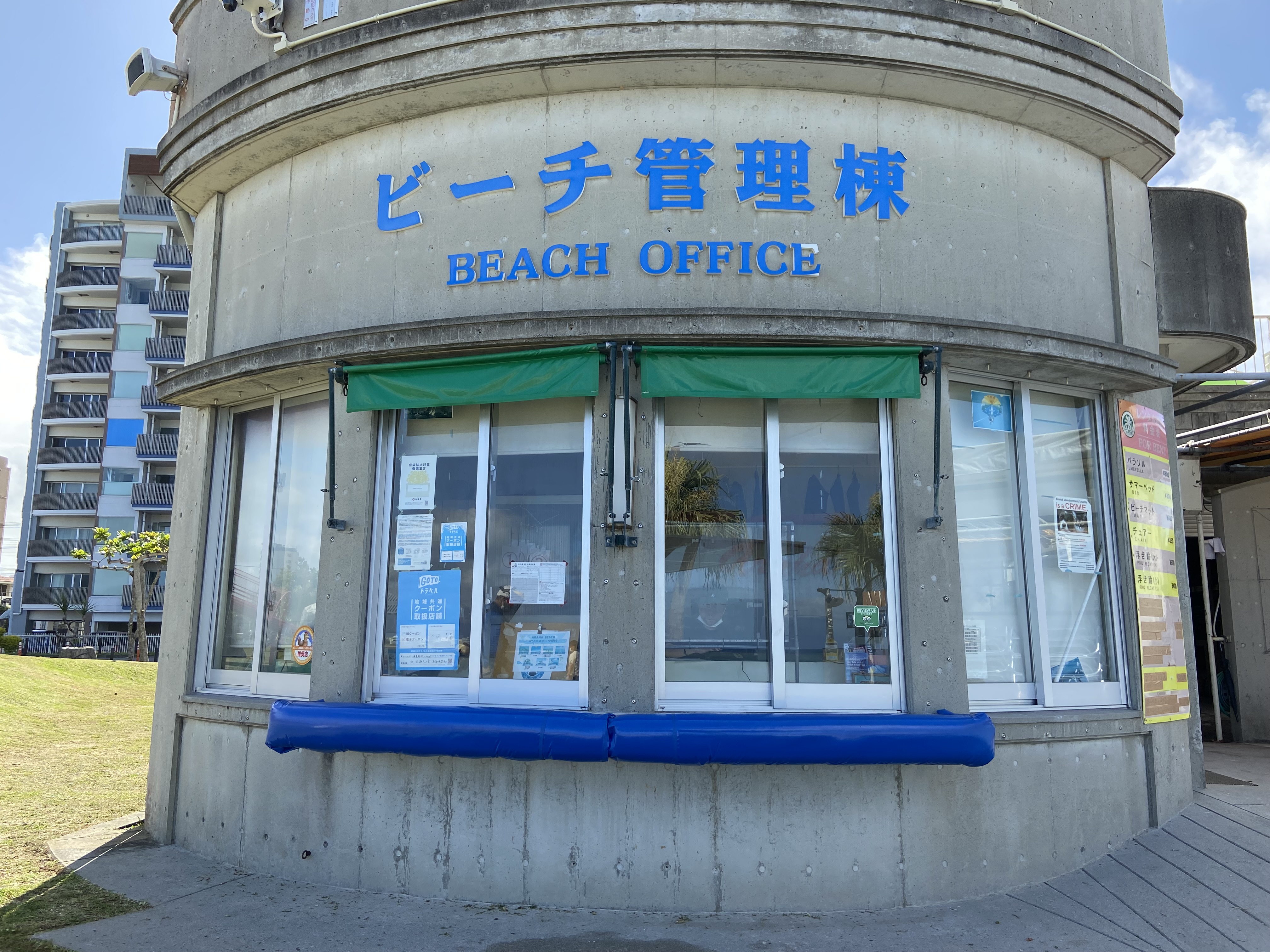 ビーチ管理棟は大きな船の遊具(インディアン・オーク号)のすぐ隣にあるコンクリートの建物です。