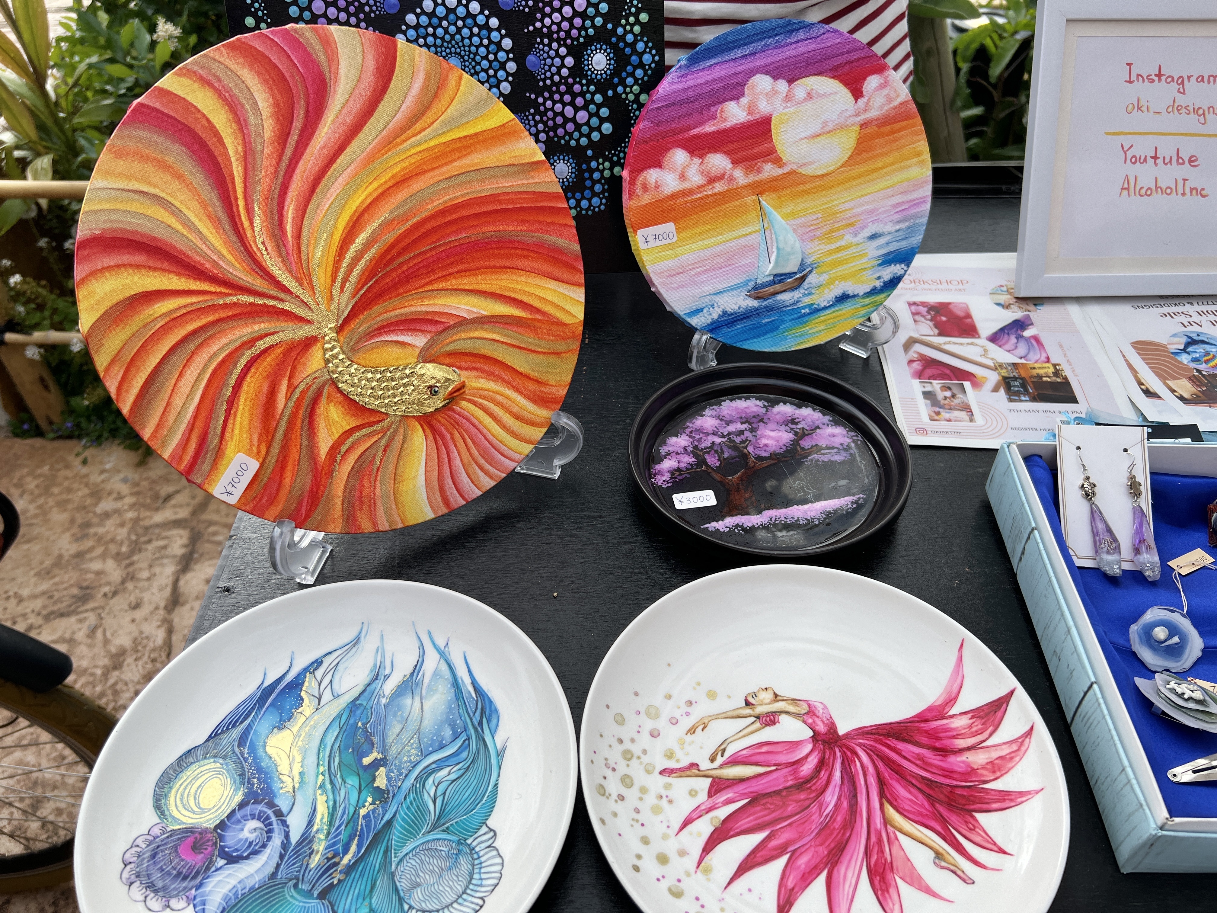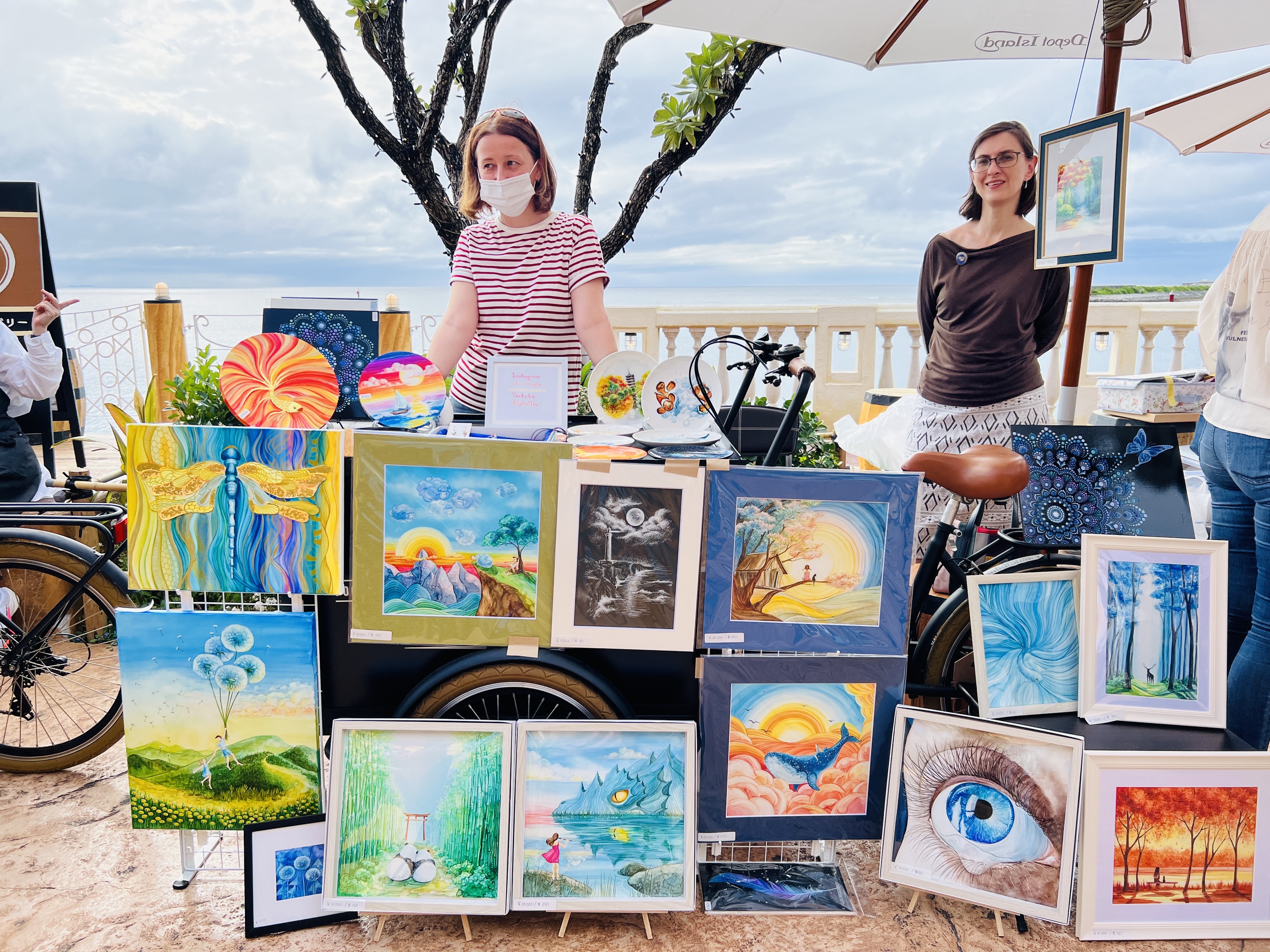Oksanaさんの作品は、令和4年5月1日~14日に北谷町美浜デポアイランド内オークファッションビルのギフトショップ「XROSS*R(クロスアール)」さんにて展示販売のイベントが行われるようです。