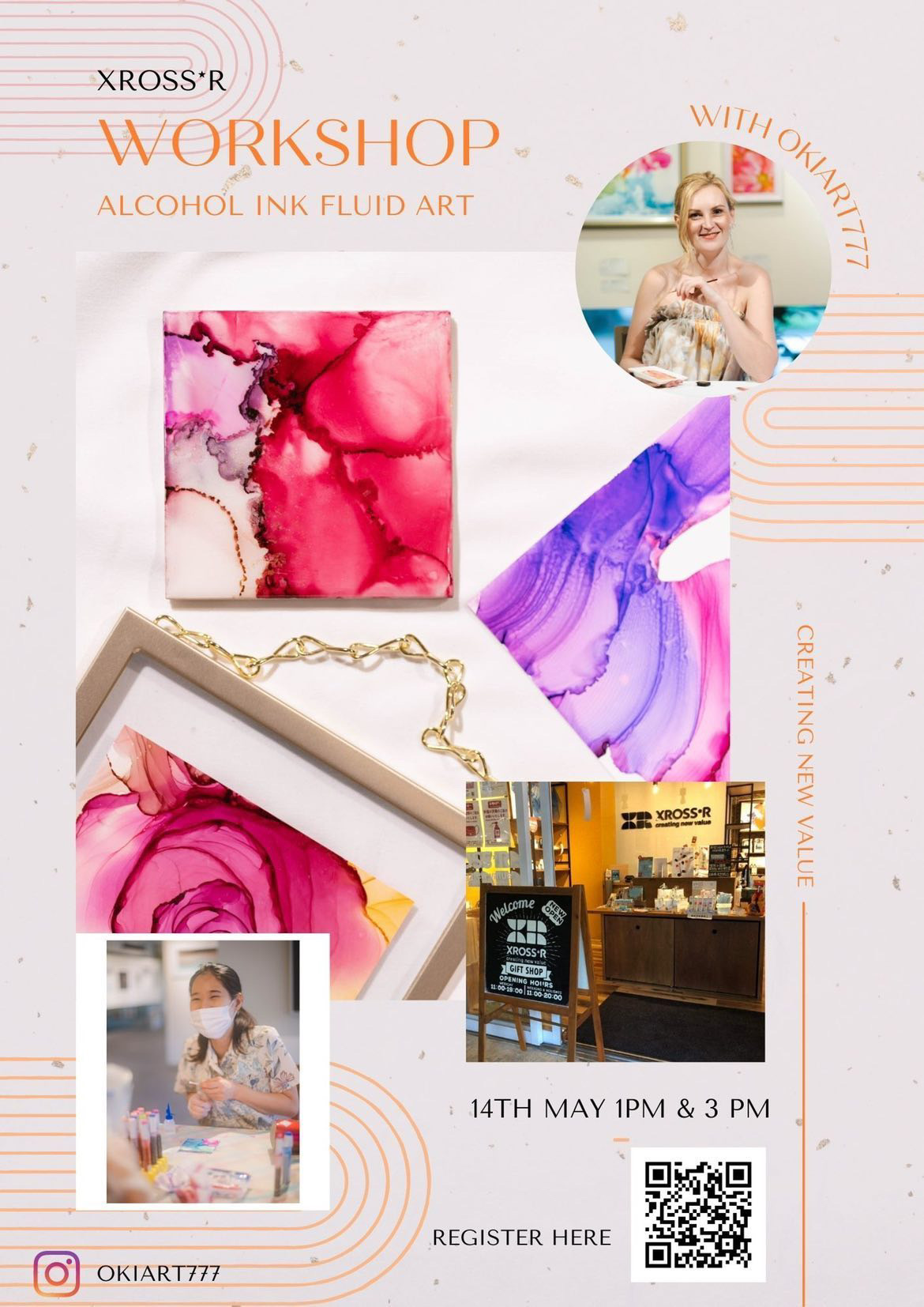 5月14日(土)の13時と15時にXROSS*R(クロスアール) にてOksanaさんのワークショップが開催されます。(参加料金2,500円)