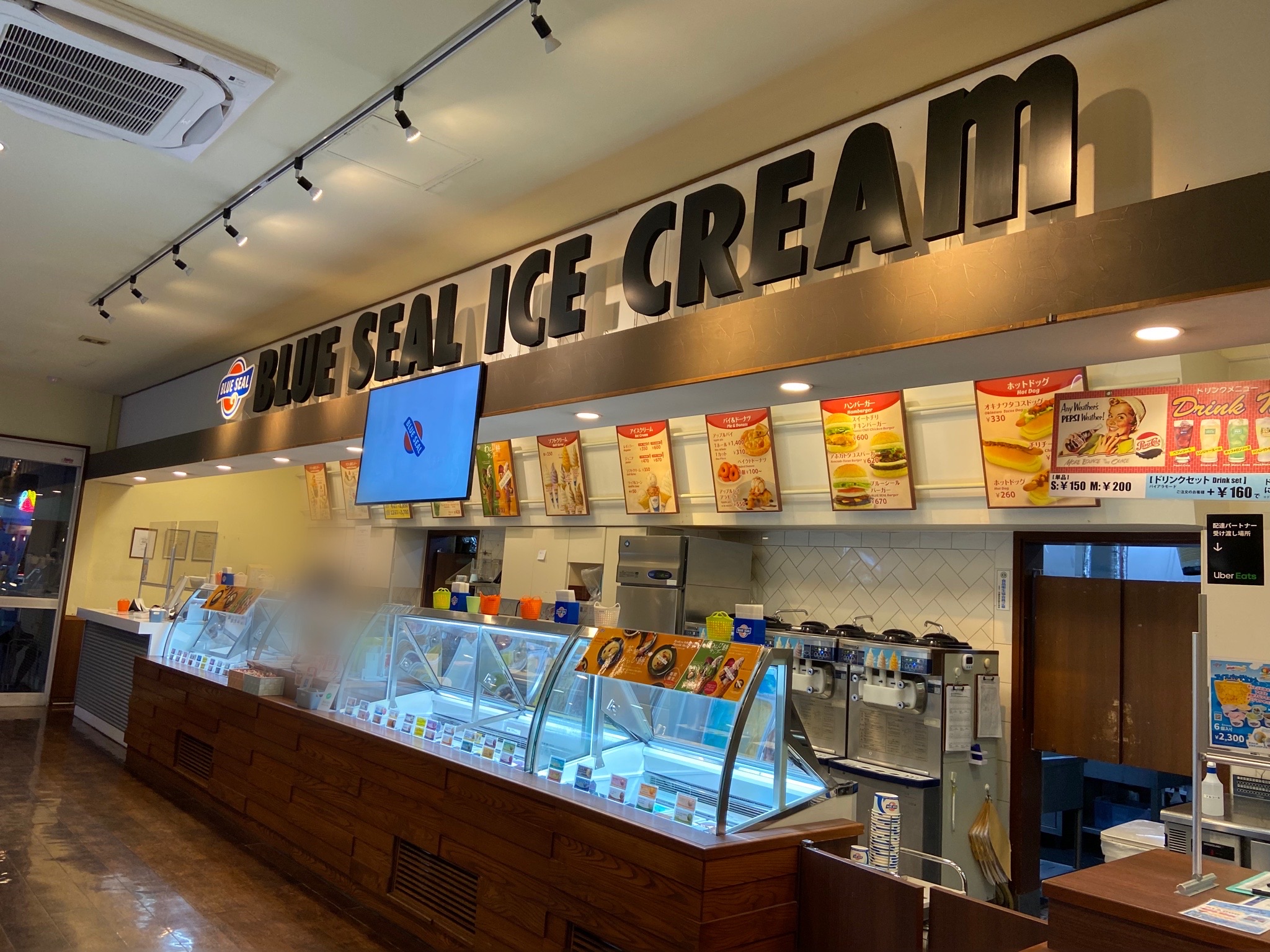 場所はブルーシール北谷店です。今回は夜の時間帯に伺った為、さほど混雑しておりませんでした。
