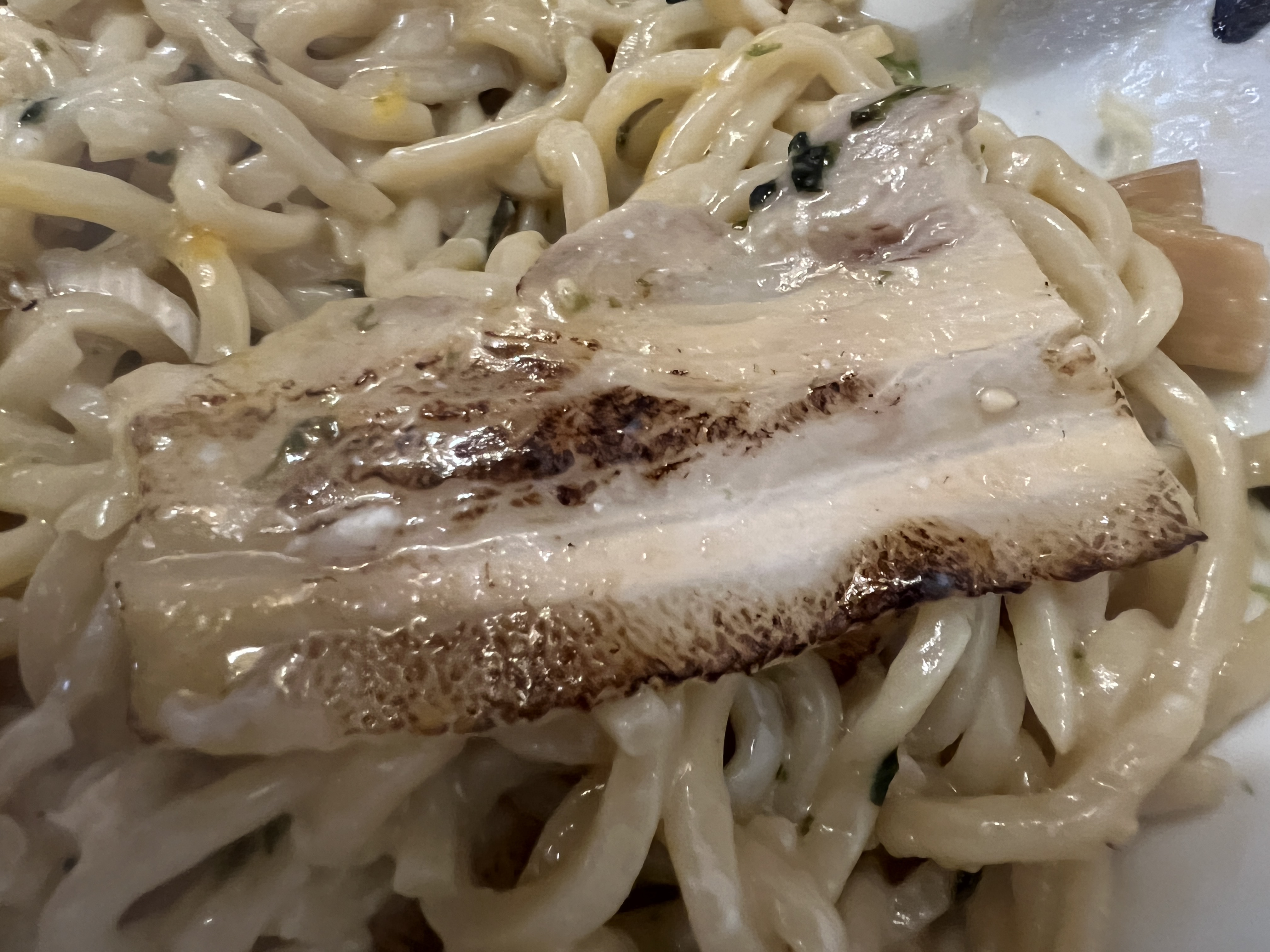 麺は太めでもっちりとしていて歯応えがとても良かったです。うどんの麺に近い印象です。