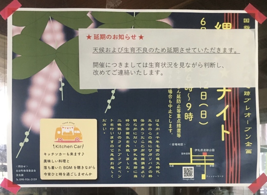 令和4年6月11日(土)・12日(日)に予定されていたサガリバナ ライトアップイベント「縄文★ナイト」は、延期となりました。
