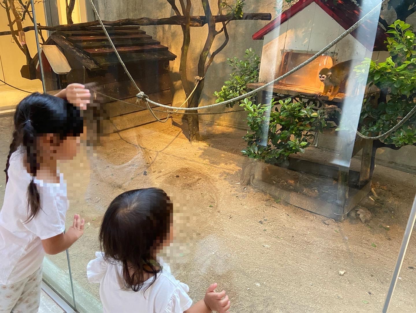 ガラス張りのお部屋の中にはリスザルとリクガメもいました。素早く動き回るリスザルと反対にゆっくり歩くリクガメも見ていて面白かったです。看板犬もいるそうですがこの日はあいにく不在でしたので別日に会いに行きたいと思います。