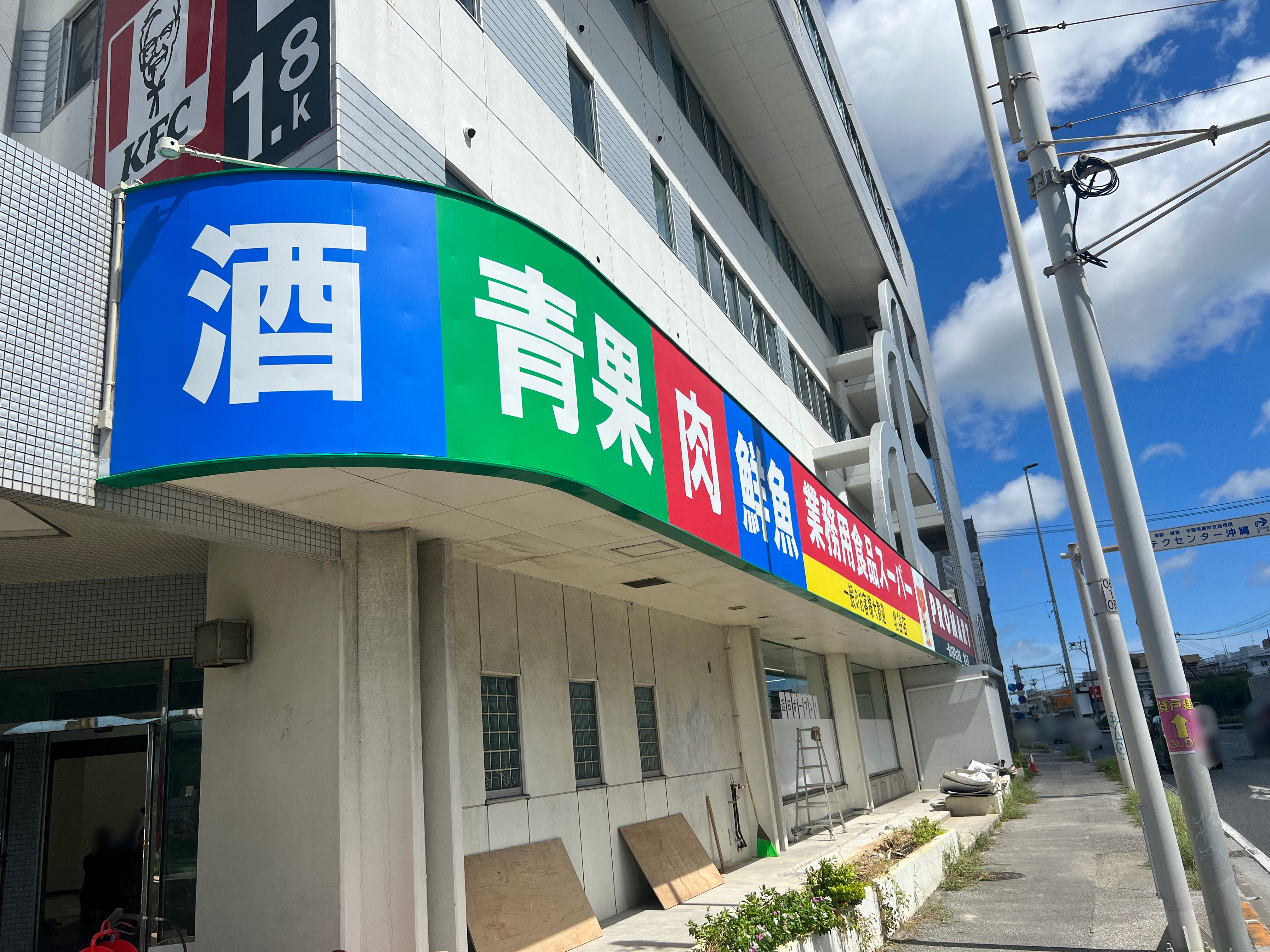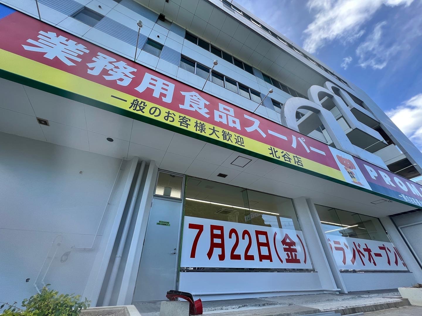 北谷町北谷の国道58号線沿いにある沖縄銀行 北谷支店向かいにある當山商事ビル1階に『業務用食品スーパー 北谷店』が近日オープンします。