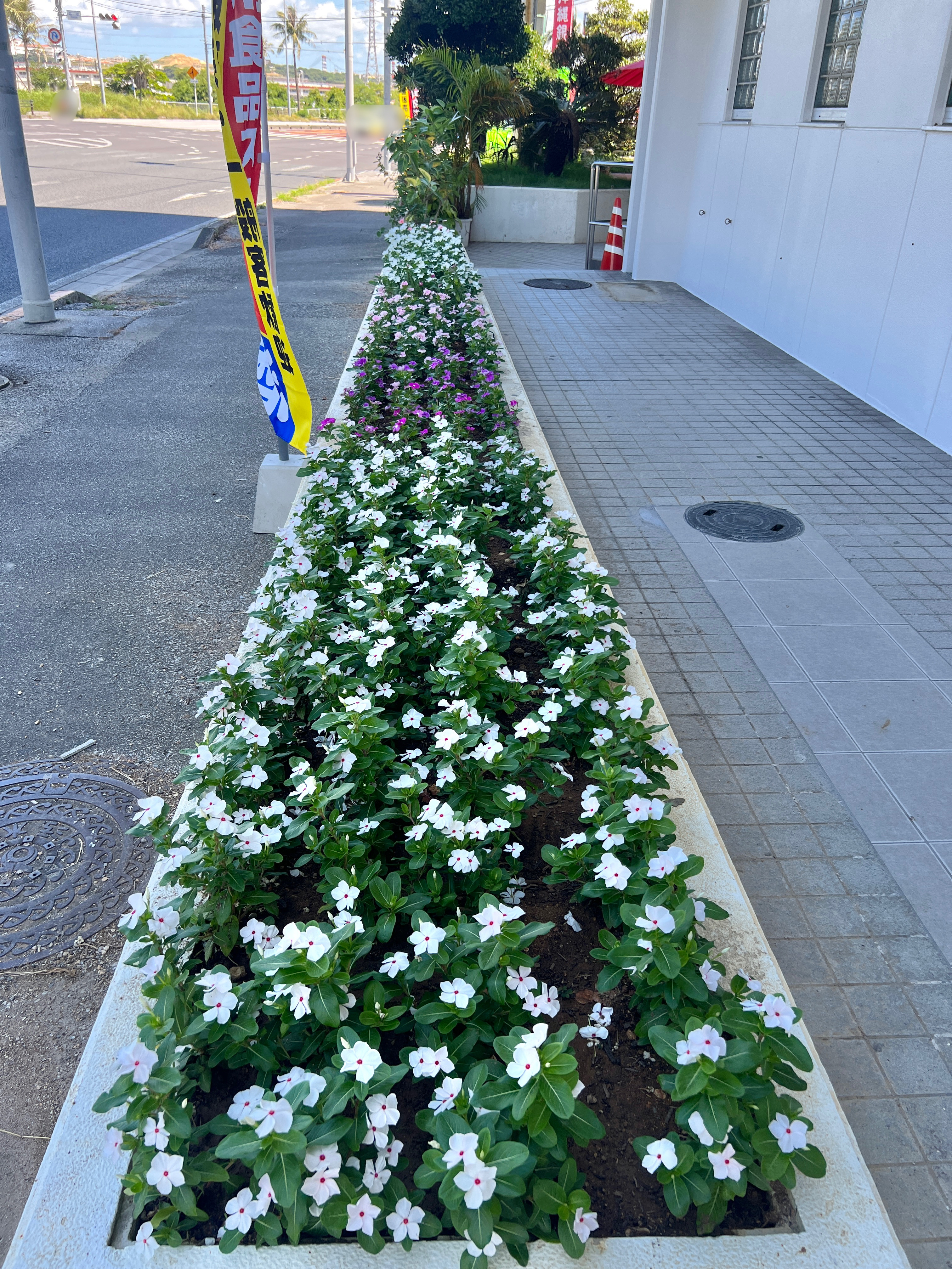国道58号線沿いの花壇には活き活きしたお花が植えられていましたよ