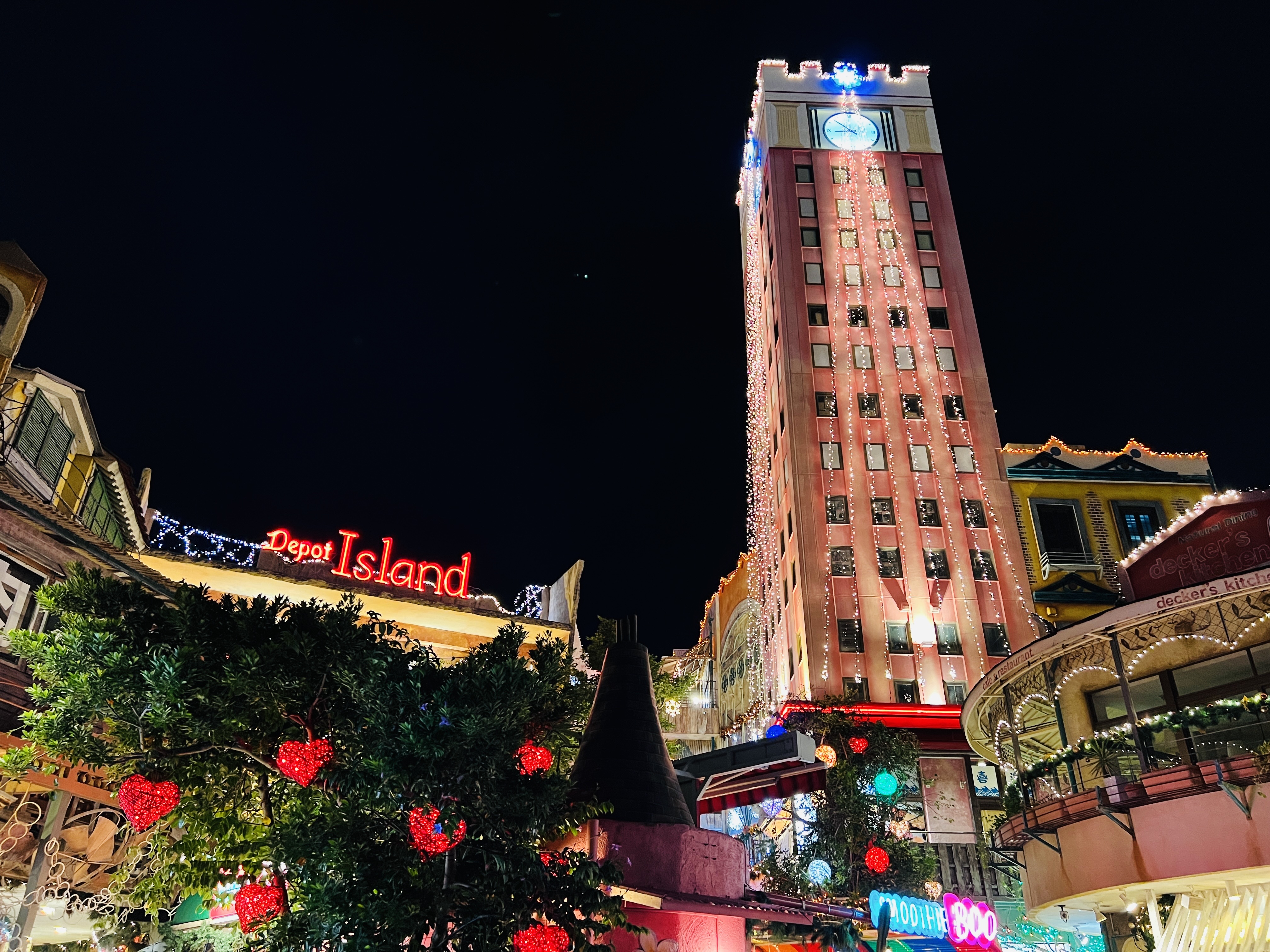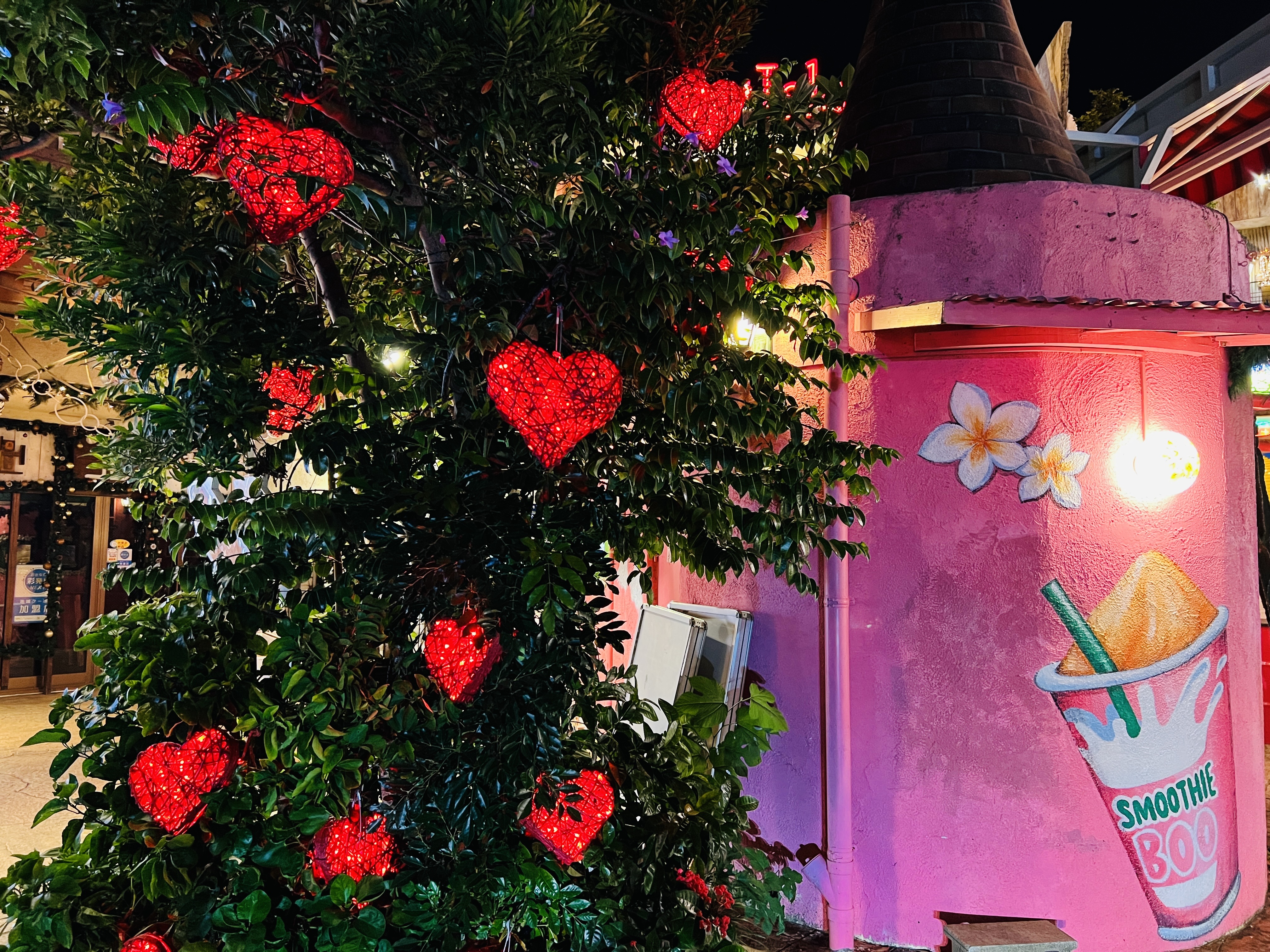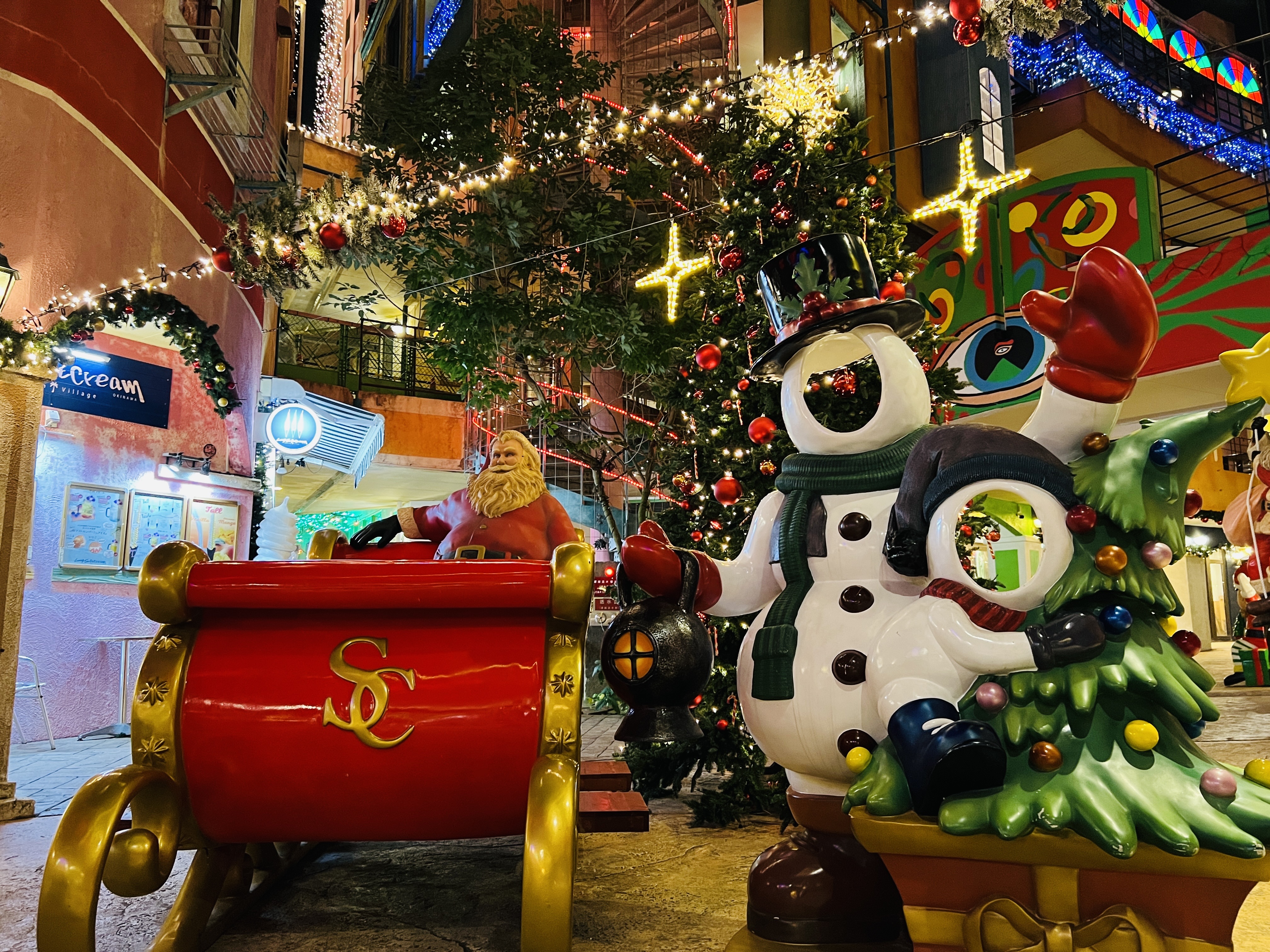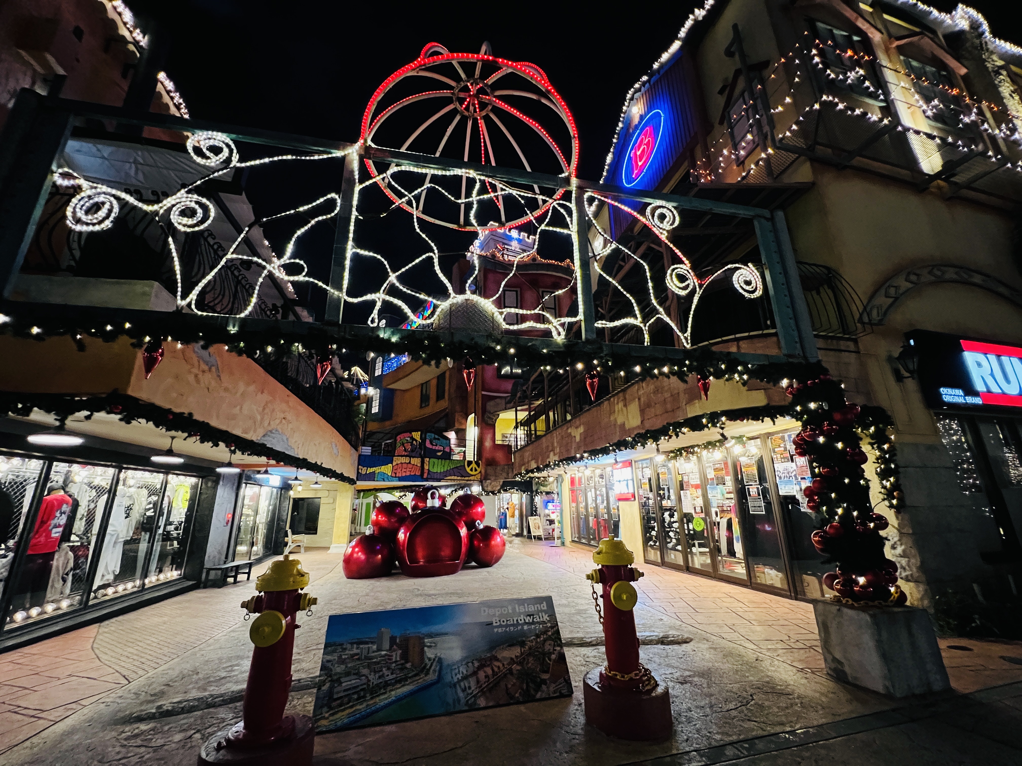 前回、北谷町美浜アメリカンビレッジ内のイルミネーションやフォトスポットの様子をご紹介しましたが、本日は同じアメリカンビレッジ内の別のエリアをご紹介します。