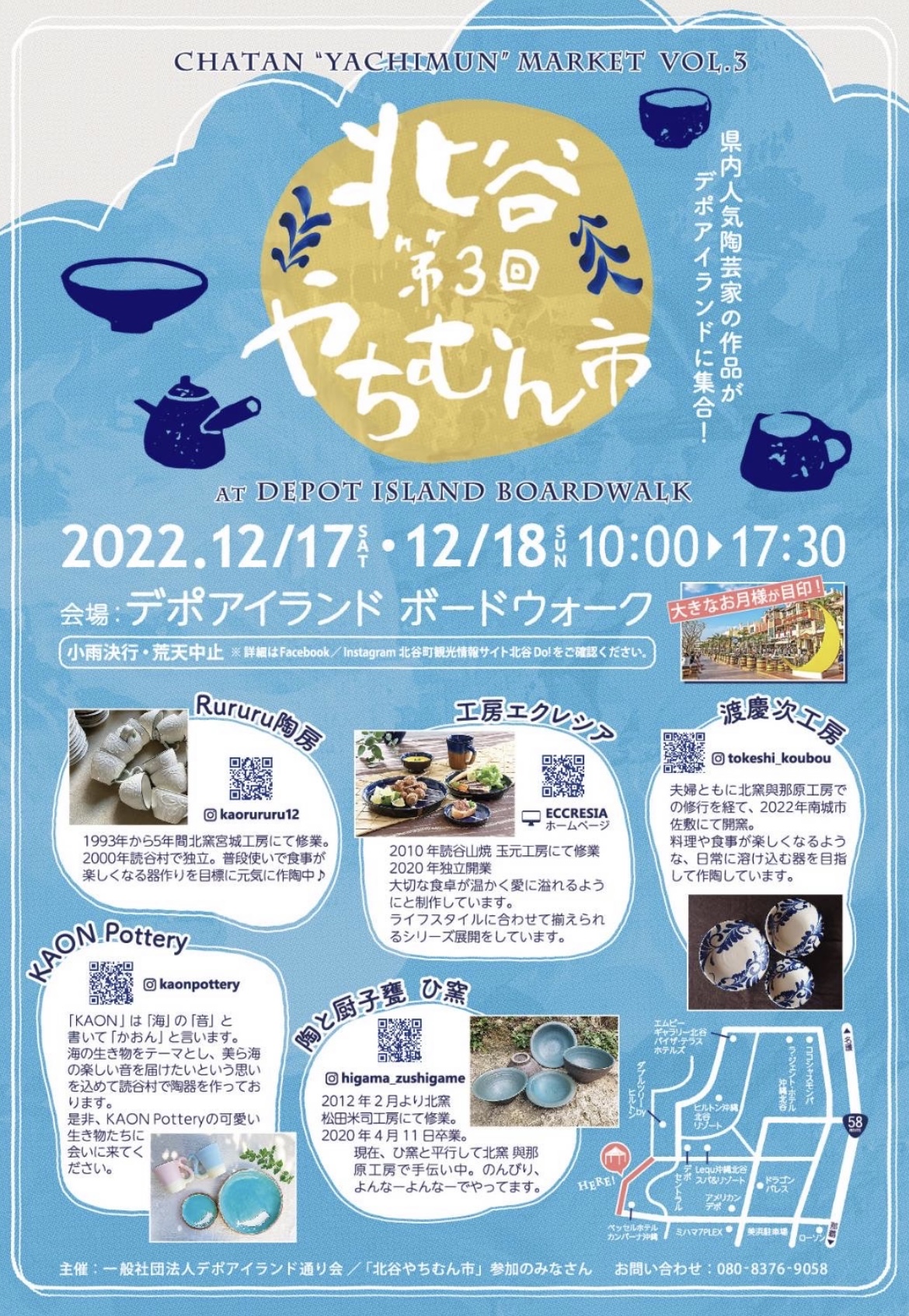 北谷町美浜のアメリカンビレッジの海側のエリア「デポアイランドボードウォーク」にて第3回目となる『北谷やちむん市』が開催されます。