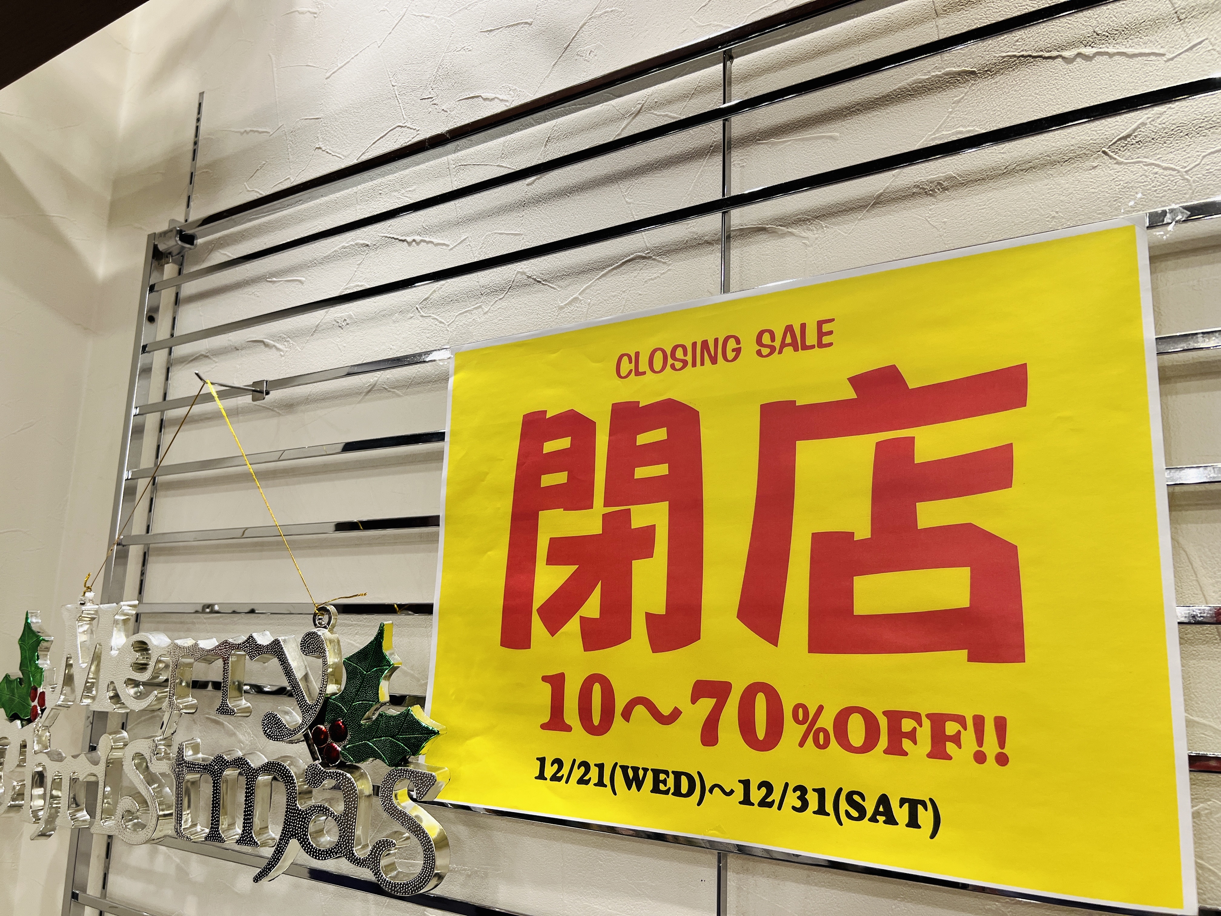 年内いっぱいまで定休日無しで営業されているので、ぜひ割引価格で冬服ゲットしに行かれてみてはいかがでしょうか。