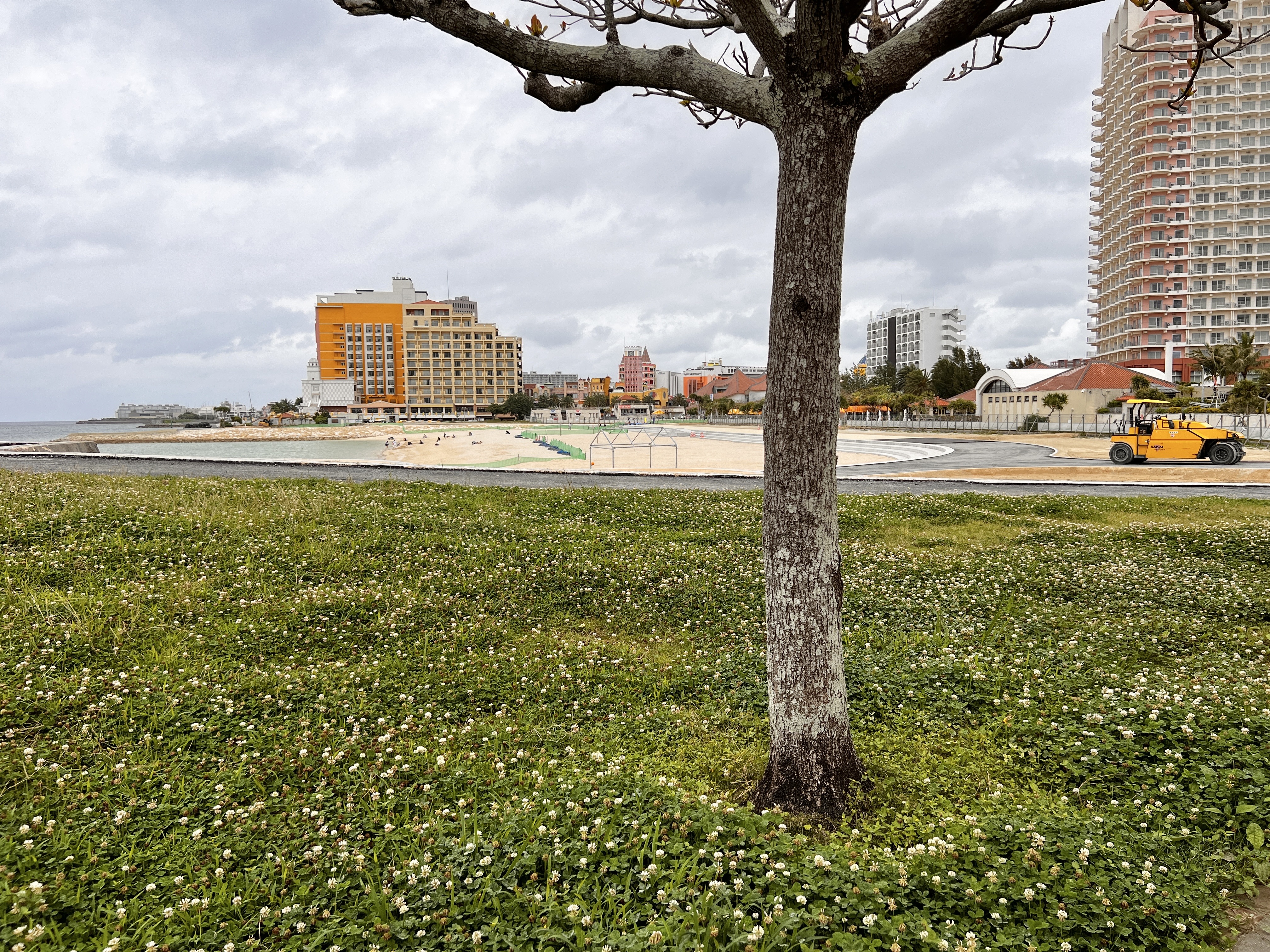 工事中のサンセットビーチですが、砂浜エリアは利用できるので、ビーチ利用者がいました。