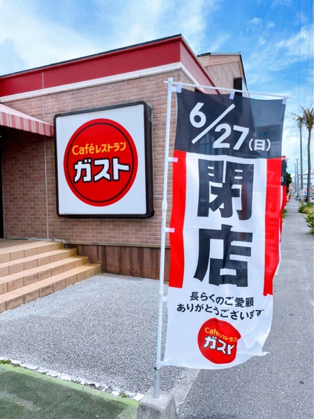 北谷町北前にあるファミリーレストラン『ガスト 北谷店』さんが6月27日(日)閉店。