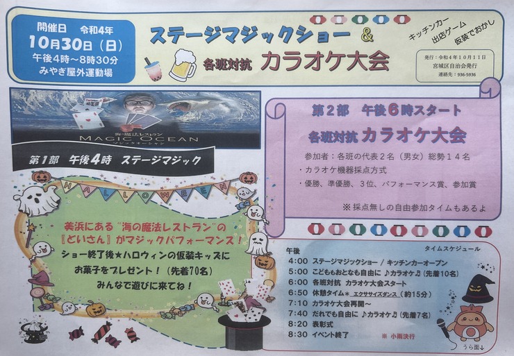 【イベント告知】北谷町「宮城屋外運動場」にて『マジックショー&カラオケ大会』令和4年10月30日(日)開催