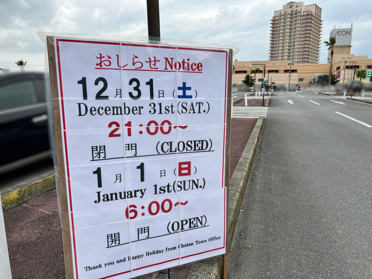 【北谷町】美浜の町営駐車場の年末年始の閉門・開門時間について