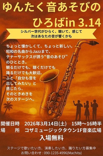【沖縄市】音楽イベント『ゆんたく音あそびのひろば in 3.14』2026年3月14日(土)開催♪