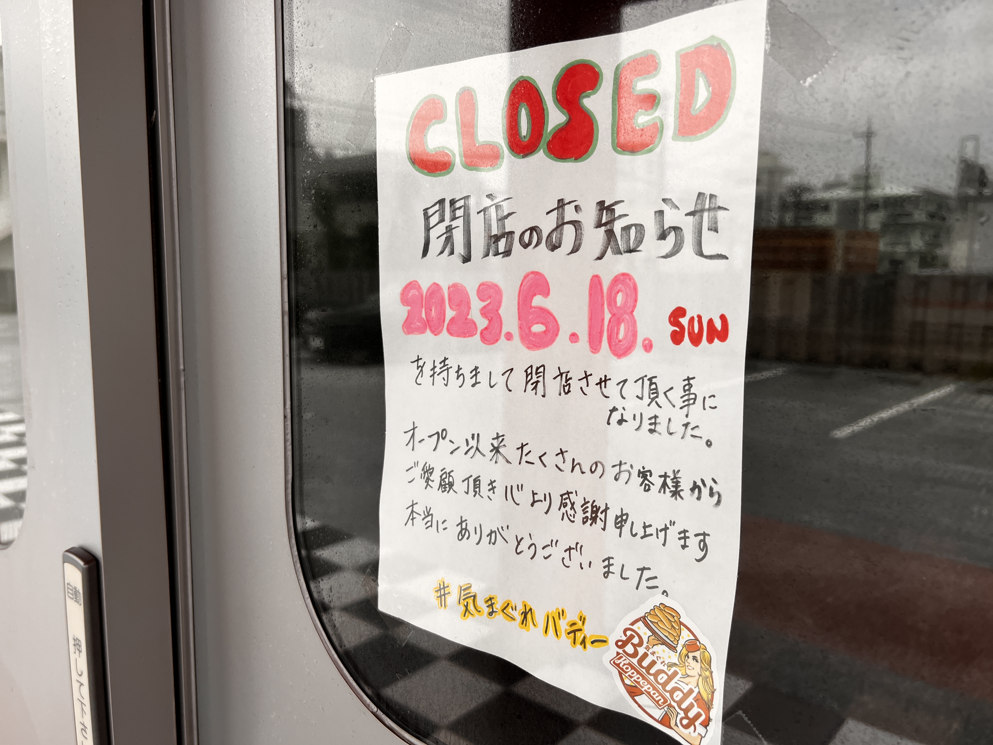 お店のドアには6月18(日)をもって閉店したというお知らせが掲示されていました。