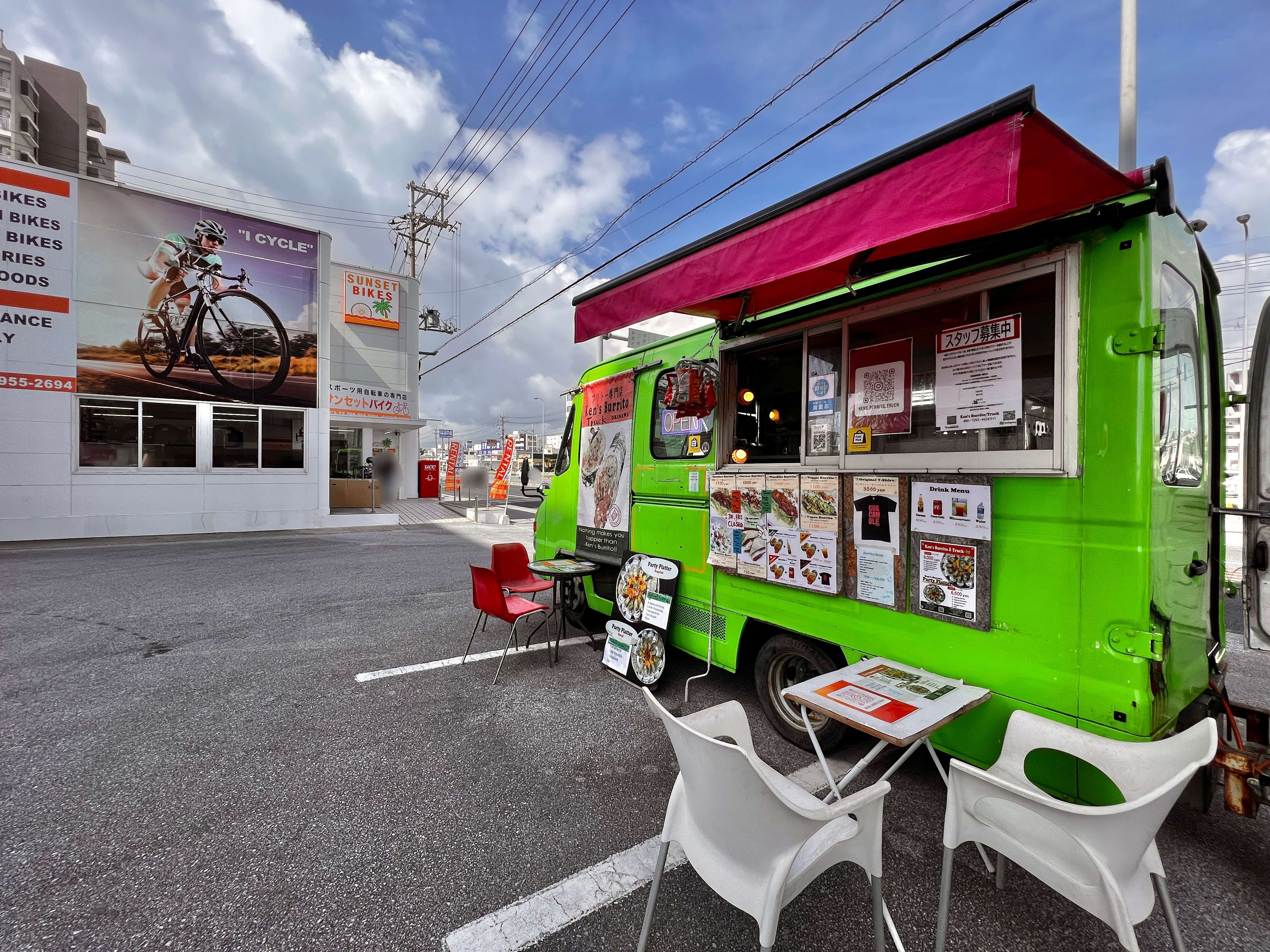 国道58号線沿いの自転車屋さん「サンセットバイク」の駐車場内で営業しています。