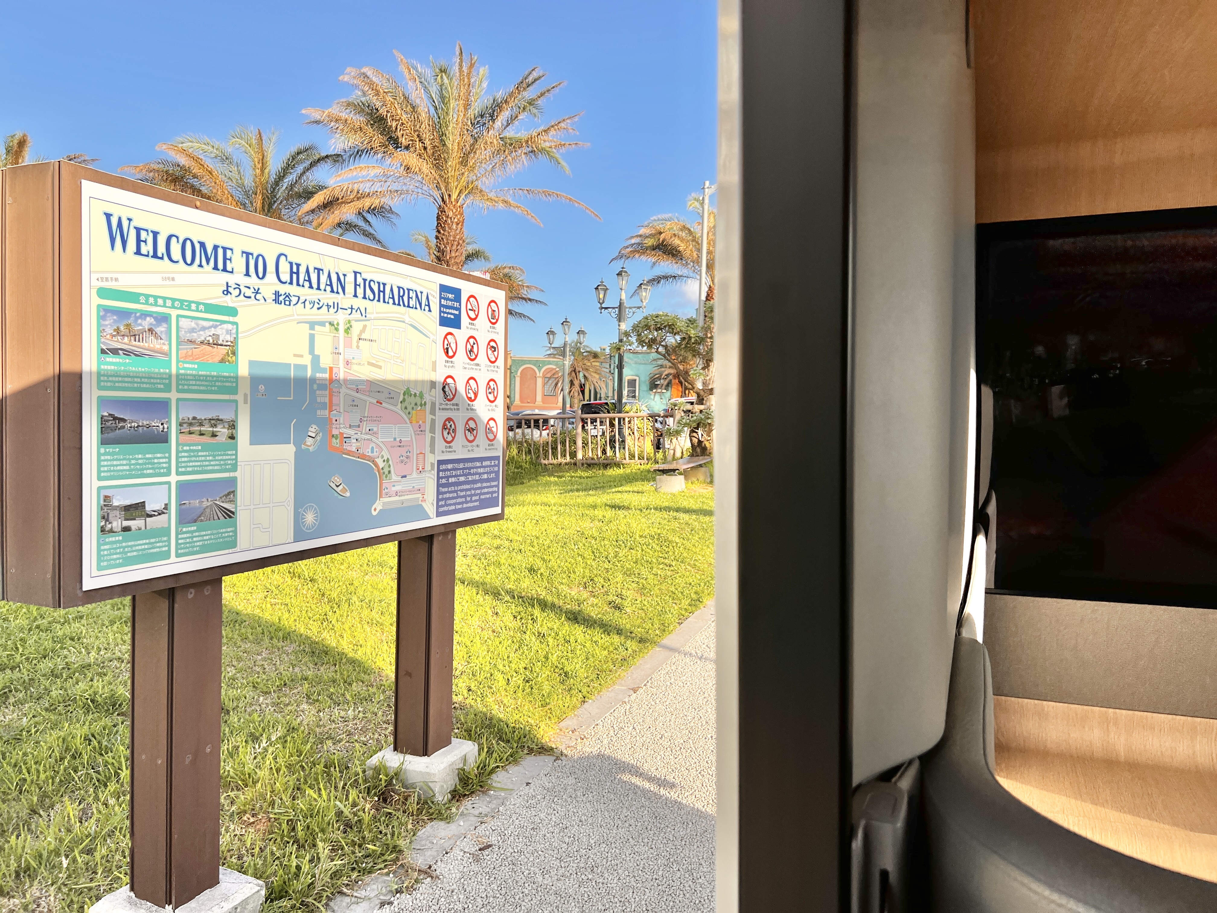 お車で行かれる方は最寄りの駐車場は、うみんちゅワーフお隣の「NPC24H北谷フィッシャリーナ第1駐車場」が利用可能です。
