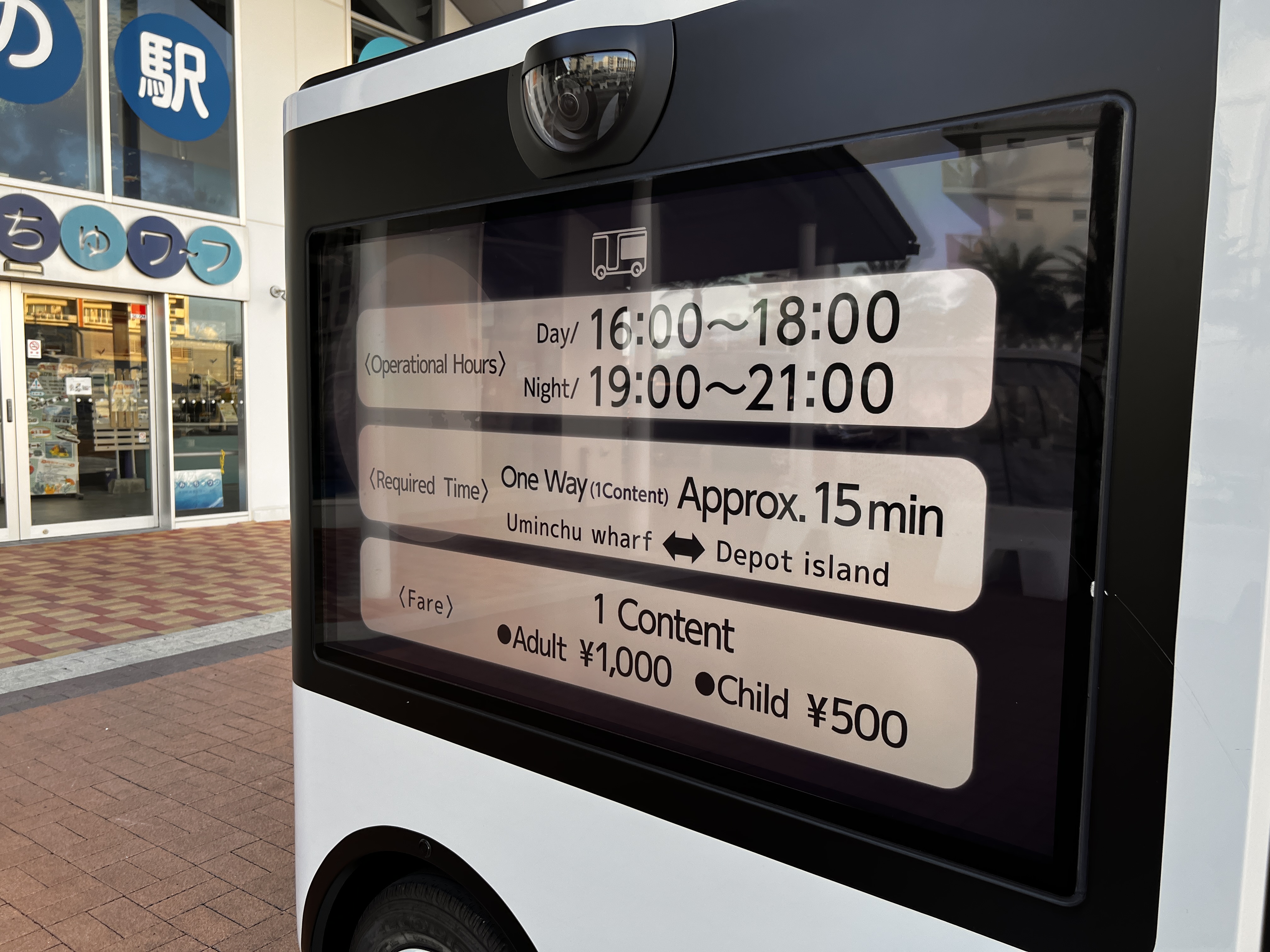 行きと同じくモニターに夢中になり、あっという間に目的地のうみんちゅワーフに到着しました。