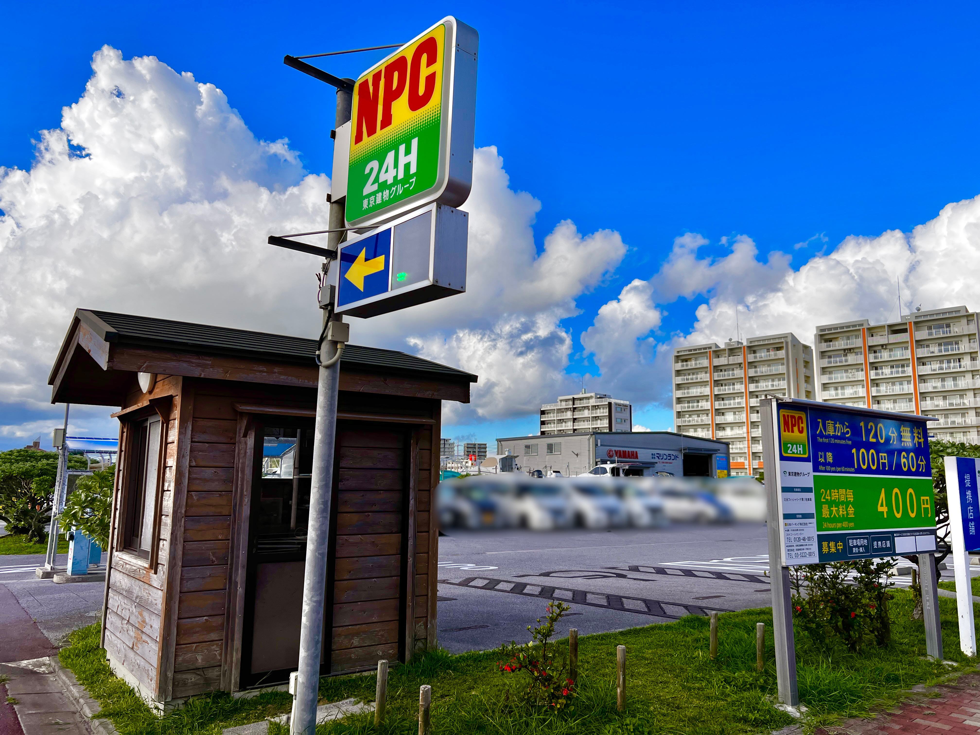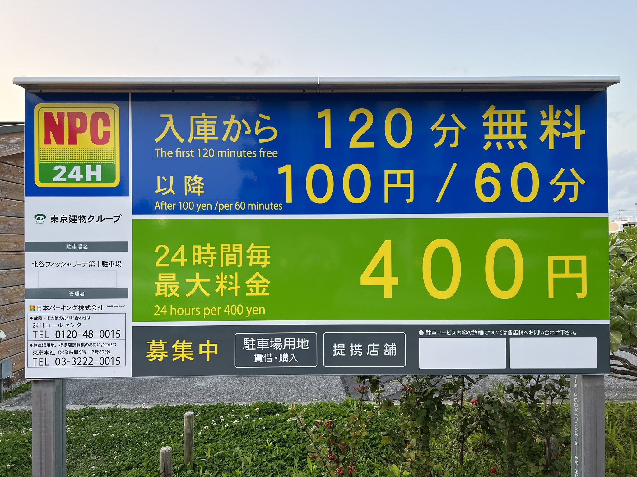 入庫から120分無料で24時間毎最大400円で利用可能なコインパーキングです。