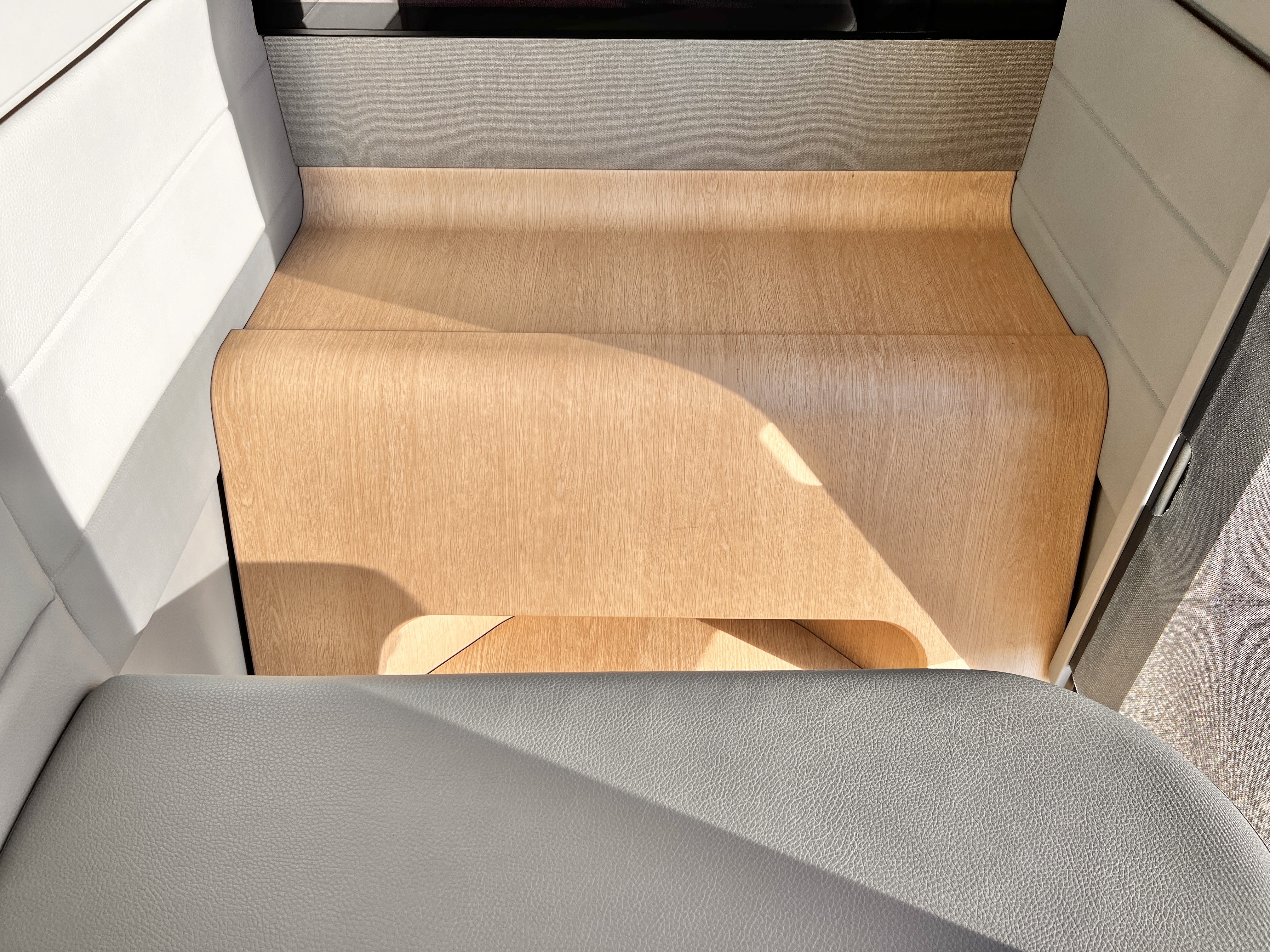 前の方のモニター下には軽めの手荷物なら置くことができます。