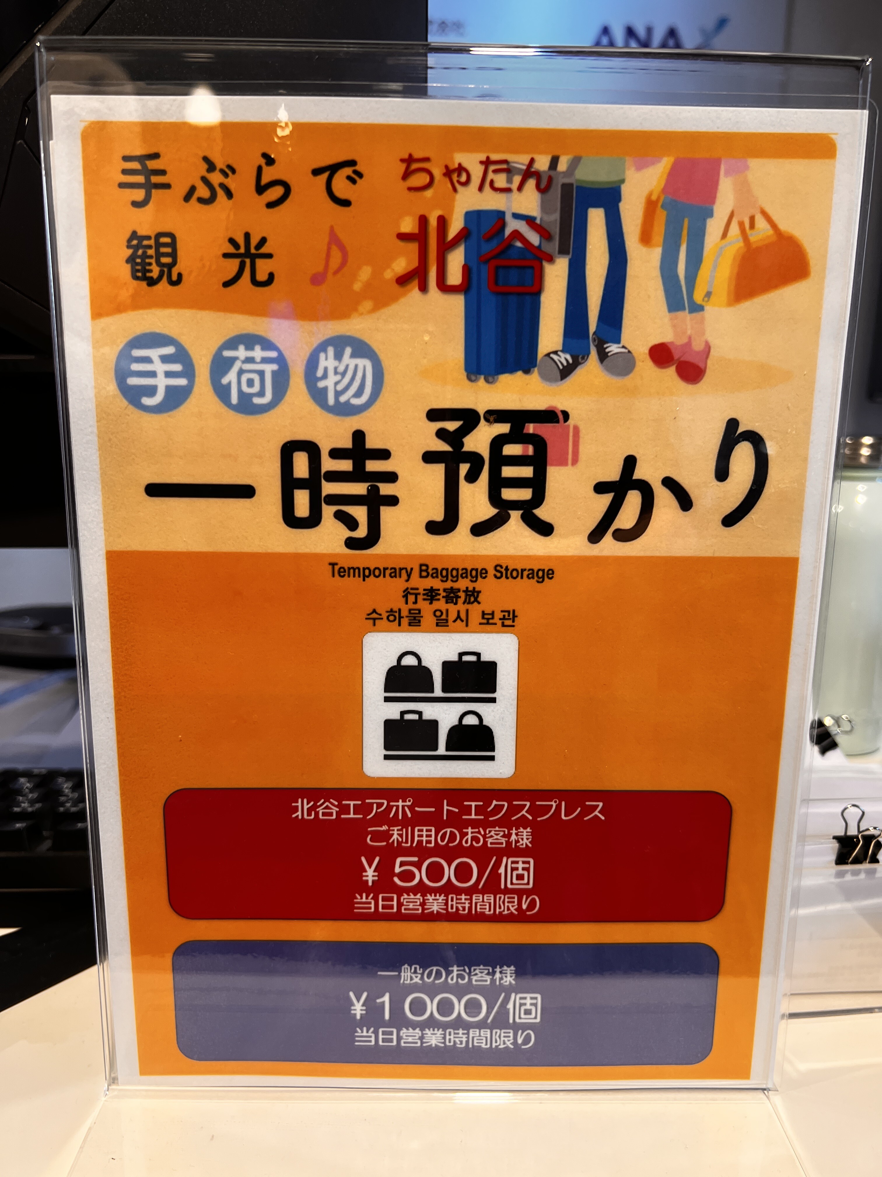 同じ受付カウンターでは、手荷物の一時預かりもされています。