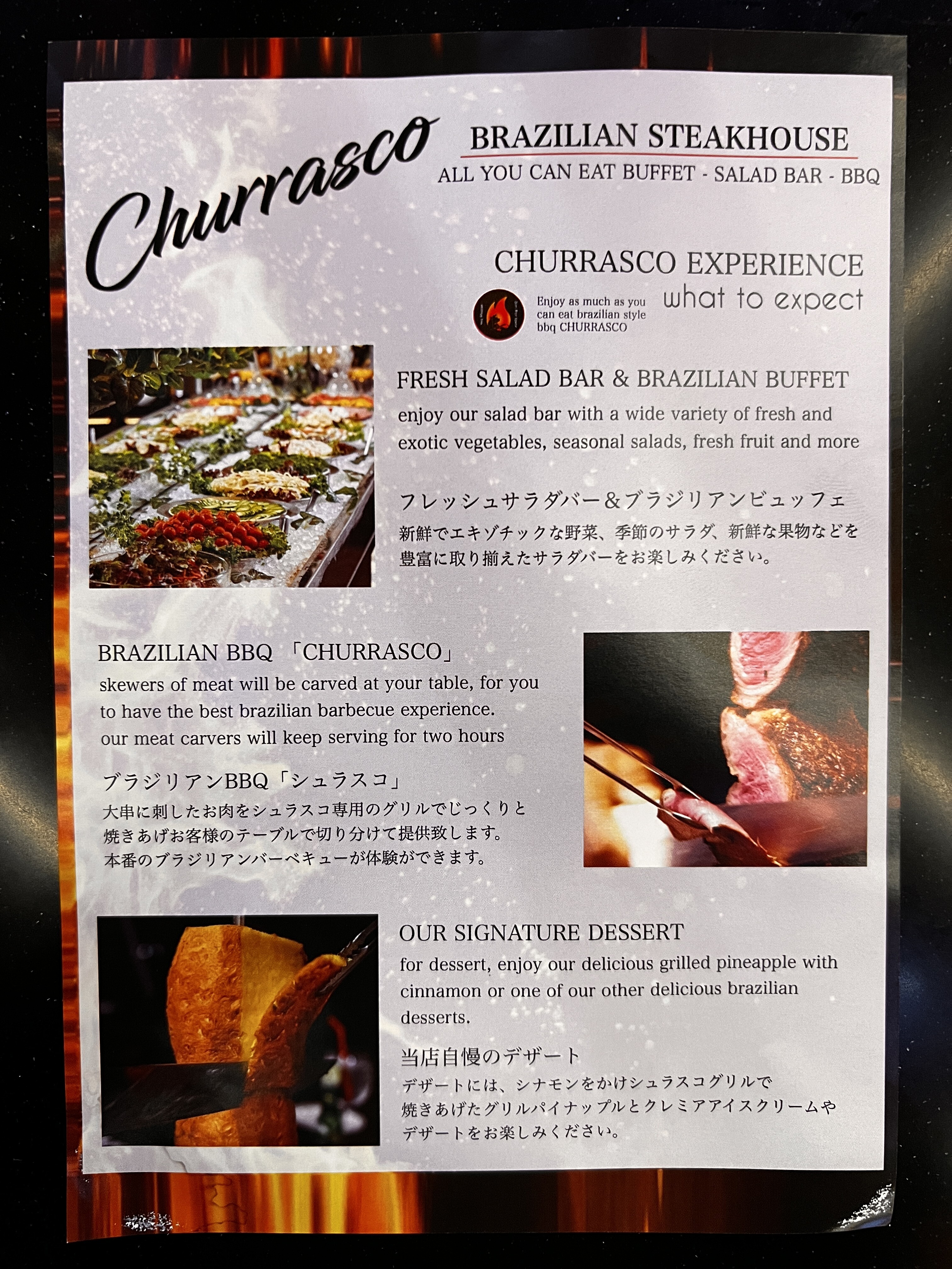 ちなみにシュラスコとは、ブラジル生まれで串焼きにされた肉料理です。